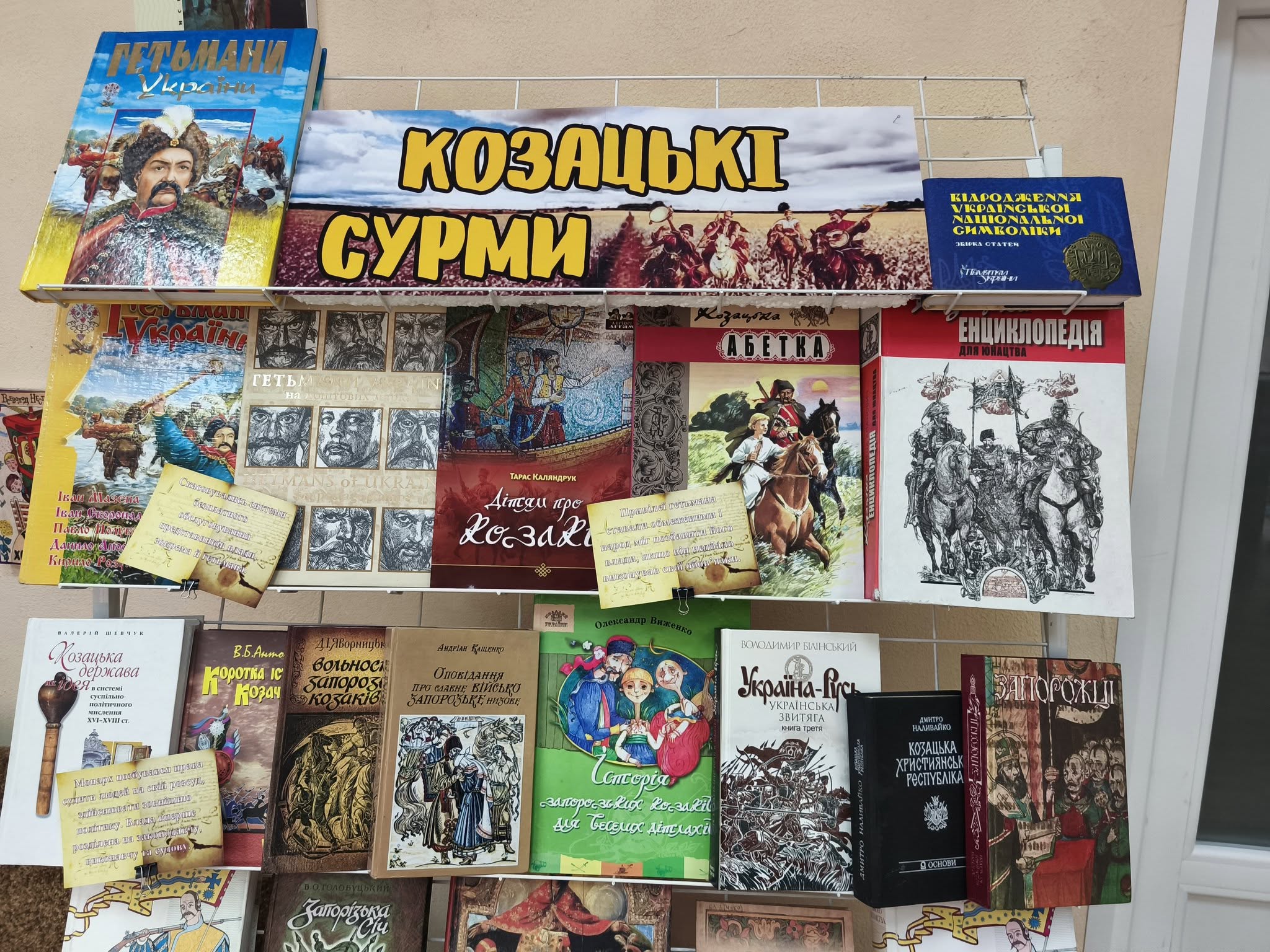 До цих важливих дат у бібліотеці також розгорнуто історичну панораму «Козацькі сурми». Ця експозиція знайомить відвідувачів з багатою історією славетного українського козацтва, його багатими традиціями та самобутньою культурою. Окремий розділ присвячений біографіям видатних гетьманів. Цікавим доповненням є ознайомлення з окремими статтями Конституції Пилипа Орлика, що знайшли своє відображення та продовження в сучасному Основному Законі незалежної України.