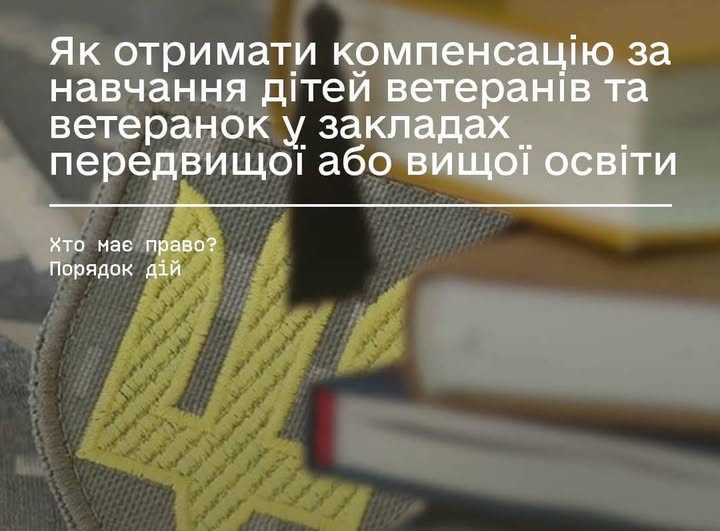 ✨ Ваші батьки – ветерани війни? 🪖🇺🇦 Отримайте важливу допомогу на навчання через застосунок “Дія” 👩🏻🎓👨🏻🎓. Навчання на контрактній основі у вищих навчальних закладах, коледжах чи інших освітніх установах стало значно доступнішим. Держава повністю покриє вартість навчання за 2024/2025 навчальний рік для дітей наших захисників та захисниць.