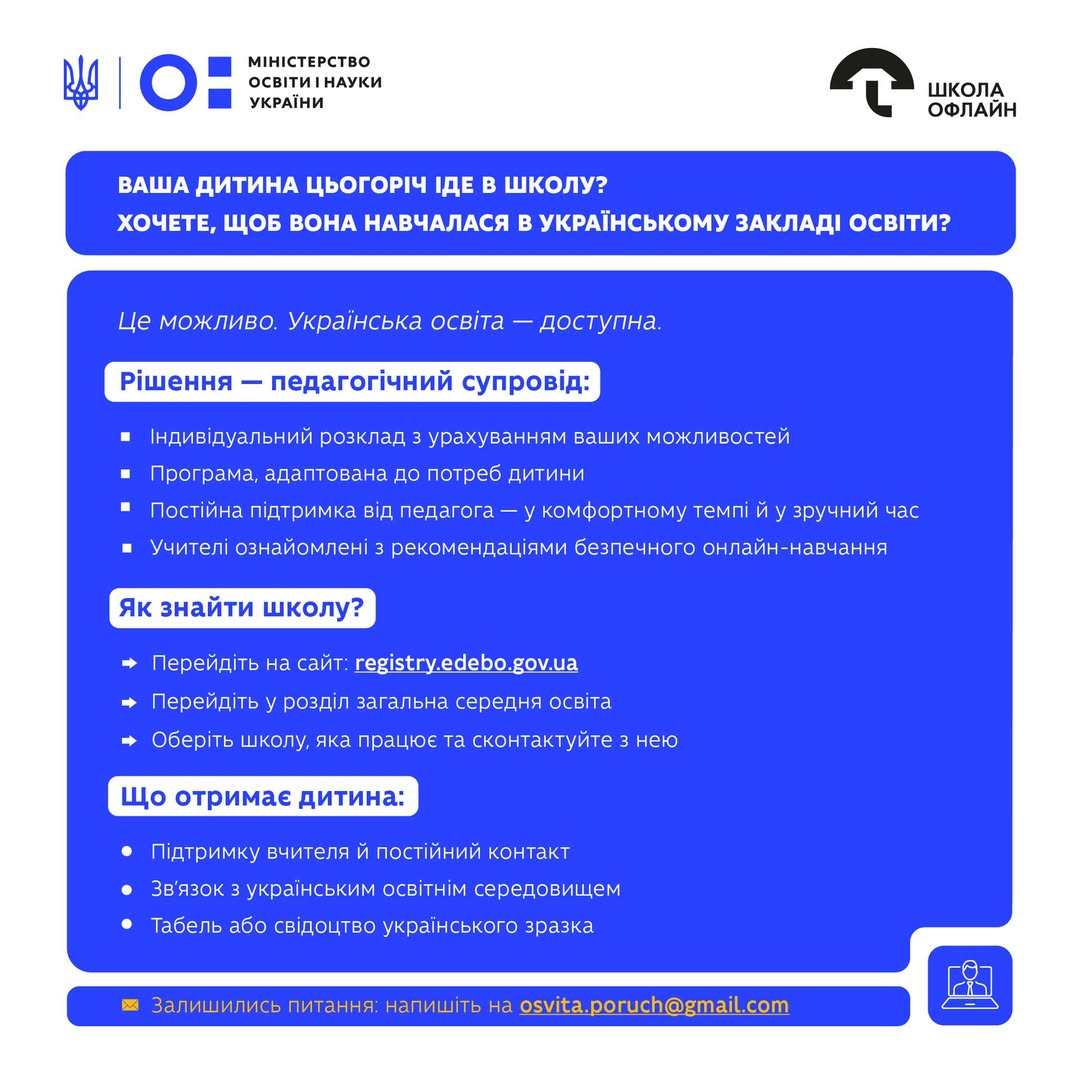 Забезпечення доступу до української освіти для дітей, які перебувають на тимчасово окупованих територіях (ТОТ), є пріоритетним завданням. Навіть у складних умовах кожен першокласник має можливість здобувати знання згідно з українською програмою. Ця ініціатива гарантує, що дитина залишається частиною українського освітнього простору, зберігаючи свою національну ідентичність та доступ до якісних знань. Важливо, щоб діти, які зростають на ТОТ, мали міцний зв’язок з рідною державою через систему навчання. Основною формою організації навчання для таких учнів є педагогічний патронаж. Це спеціально адаптована модель, розроблена для забезпечення безперервного освітнього процесу в умовах, де традиційне відвідування школи неможливе або небезпечне. Педагогічний патронаж передбачає індивідуальний підхід до кожного учня. Програма навчання адаптована до умов, що існують на ТОТ, забезпечуючи максимальну зручність та ефективність. Гнучкий розклад дає змогу батькам та дітям обирати оптимальний час для занять, враховуючи індивідуальні потреби та обставини. Ключовою перевагою цієї форми навчання є постійна підтримка досвідченого українського вчителя. Педагог працює з дитиною індивідуально, надаючи необхідні пояснення, перевіряючи завдання та мотивуючи до навчання. Такий персоналізований підхід допомагає уникнути прогалин у знаннях та забезпечує високу якість освіти, незважаючи на зовнішні чинники. Це не просто дистанційне навчання; це цілісна система підтримки, спрямована на збереження та розвиток української освіти для майбутнього покоління. Для батьків, чиї діти досягли шкільного віку і перебувають на ТОТ, можливість здобуття української освіти є надзвичайно цінною. Це дає впевненість у тому, що дитина отримає визнаний український атестат, що відкриє їй двері до подальшого навчання в Україні або за кордоном. Процес подачі заявки на навчання до першого класу максимально спрощений. Важливо не зволікати з цим рішенням, адже кожен день навчання є кроком до успішного майбутнього дитини. Щоб дізнатися більше про цю унікальну можливість та подати заявку, батьки можуть скористатися наданою інформацією. Детальні інструкції щодо подання заяви на навчання за програмою педагогічного патронажу доступні за посиланням: http://bit.ly/4eyh4bs. Цей ресурс містить вичерпні відповіді на всі запитання, які можуть виникнути у батьків. Якщо після ознайомлення з інформацією у вас залишаться будь-які запитання щодо навчання на ТОТ або процесу подачі документів, ви завжди можете звернутися за додатковою консультацією. Напишіть на електронну пошту: [email protected]. Фахівці готові надати всебічну підтримку та допомогти з усіма аспектами організації навчального процесу. Українська освіта продовжує функціонувати та підтримувати своїх громадян, де б вони не знаходилися. Кожна дитина на тимчасово окупованій території заслуговує на якісну українську освіту, яка є запорукою її майбутнього та частиною суверенної України.