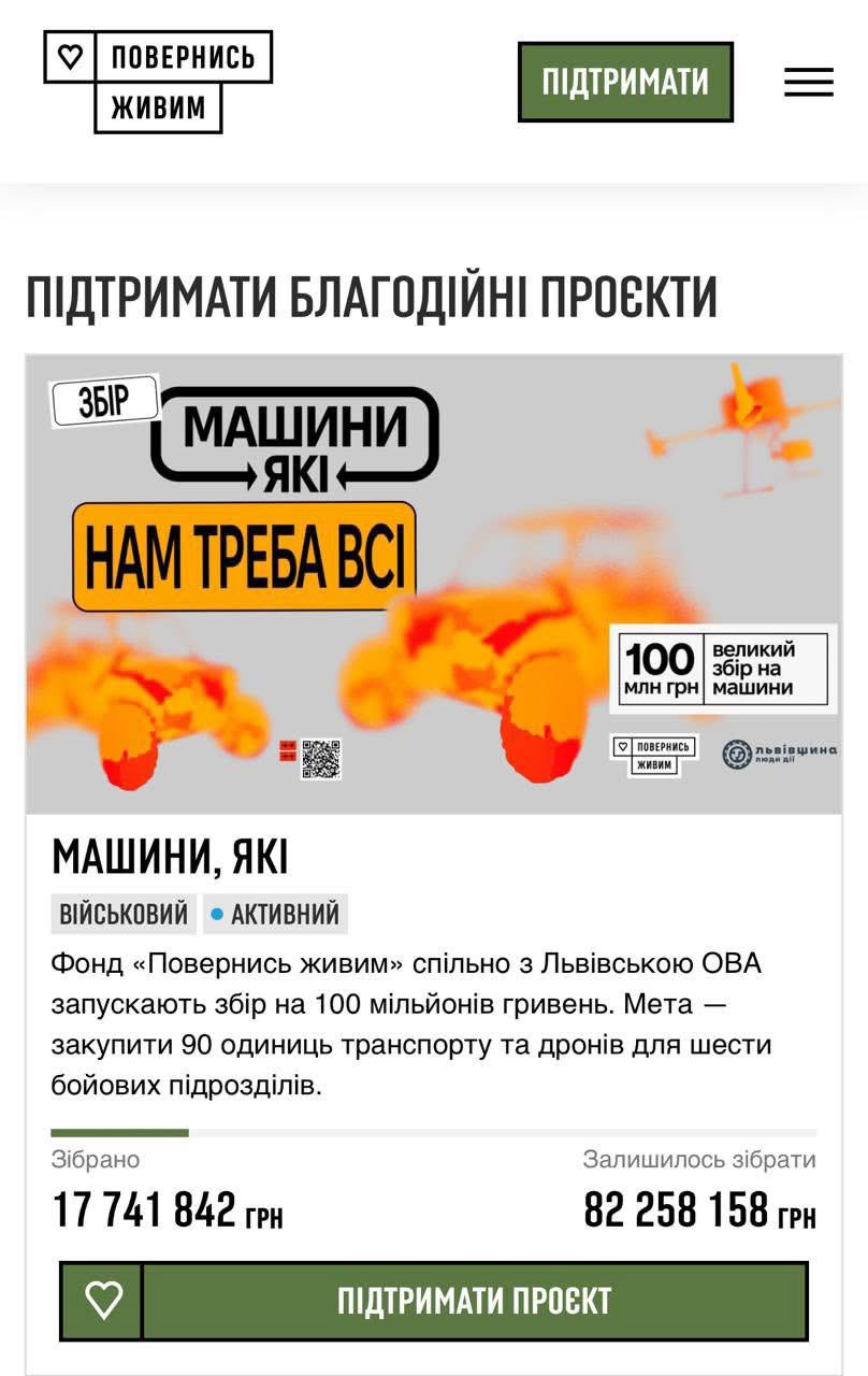 Збір 100 млн грн на транспорт для ЗСУ: допоможіть захисникам!