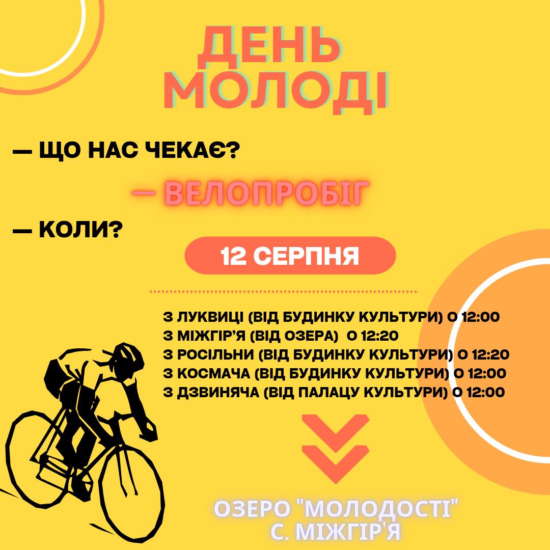 Велопробіг до Дня молоді Поїхали з нами! — Коли — 12 серпня ( вівторок) — Куди…