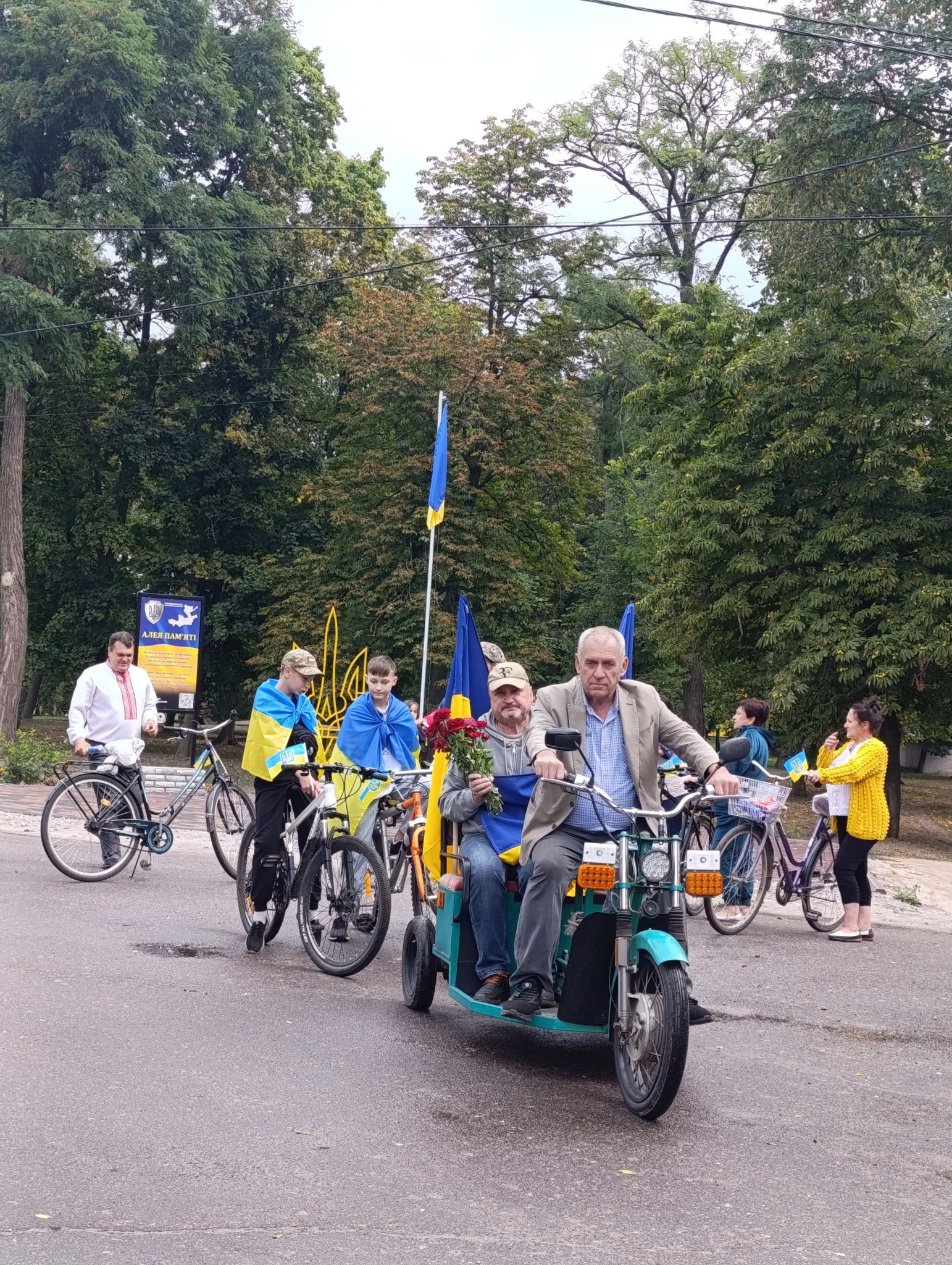 Учасники велопробігу – освітяни, працівники культури, представники сільської ради, а також діти та молодь – вирушили в дорогу, прикрашені патріотичною символікою та національними прапорами. Стартувавши від Алеї Пам’яті, колона велосипедистів проїхала маршрутом, що об’єднав ключові історичні та пам’ятні місця громади. Шлях пролягав повз Братську могилу, меморіальний хрест на місці зруйнованої церкви Святих Косьми і Даміана, і завершився біля пам’ятника великому Кобзареві – Тарасу Шевченку.