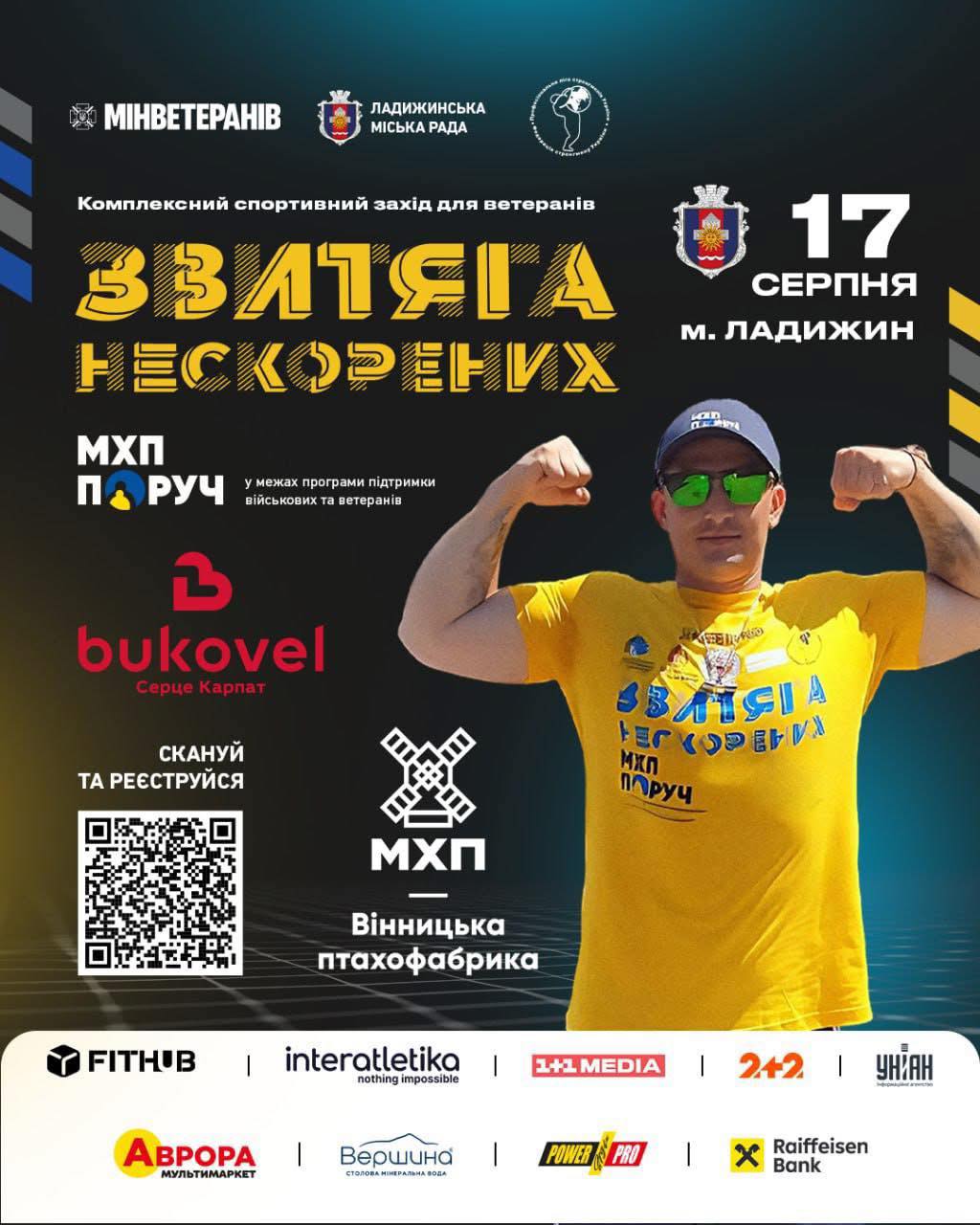 📍17 серпня 2025 року в місті Ладижин (Вінницька область) відбудеться Всеукраїнський спортивний захід для ветеранів — “Звитяга Нескорених”.