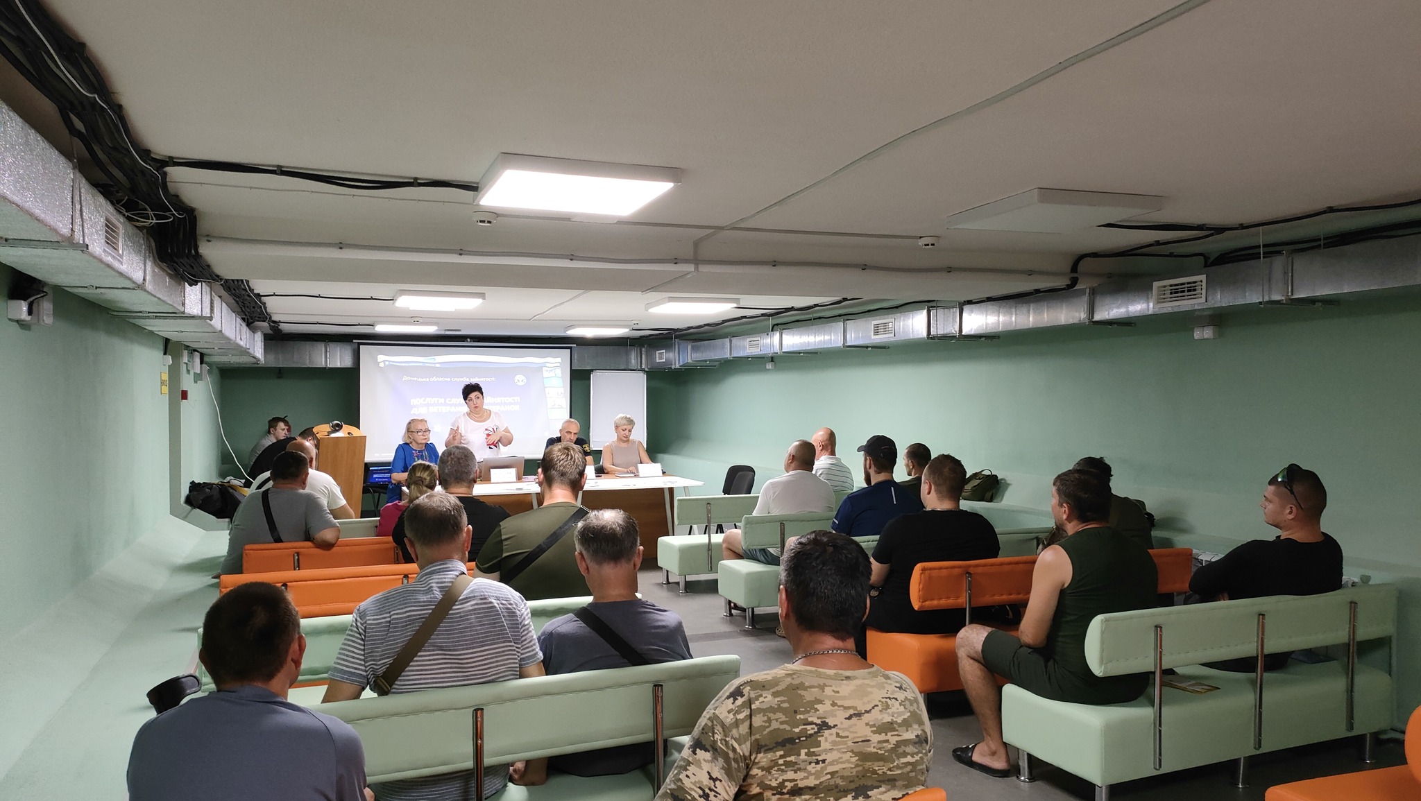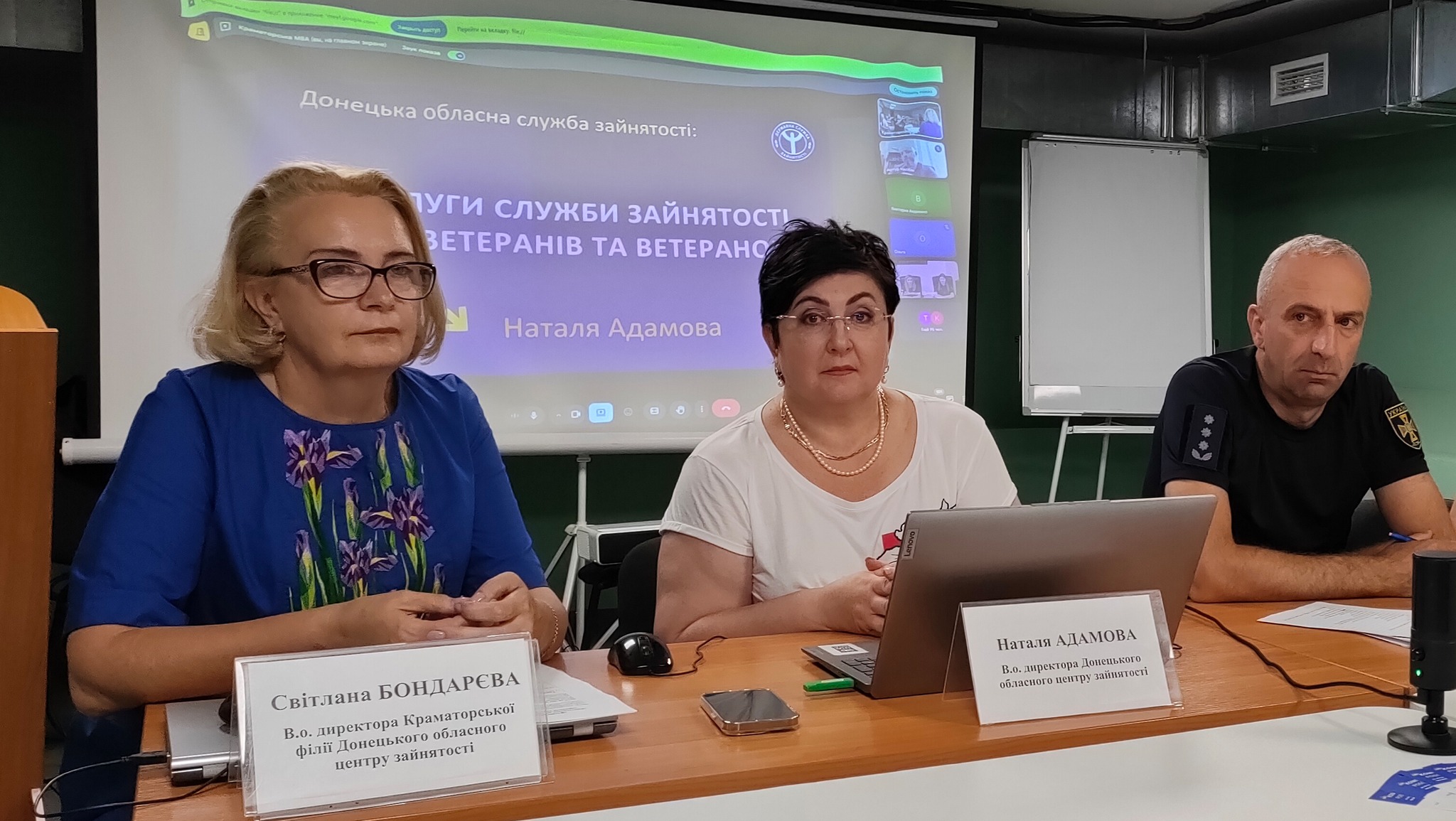У своєму виступі в.о. директора Донецького обласного центру зайнятості Наталя Адамова розповіла про програми, які допомагають ветеранам: професійне навчання та перенавчання за кошти держави, гранти на відкриття або розвиток бізнесу, співпрацю з роботодавцями, які створюють робочі місця та працевлаштовують захисників.