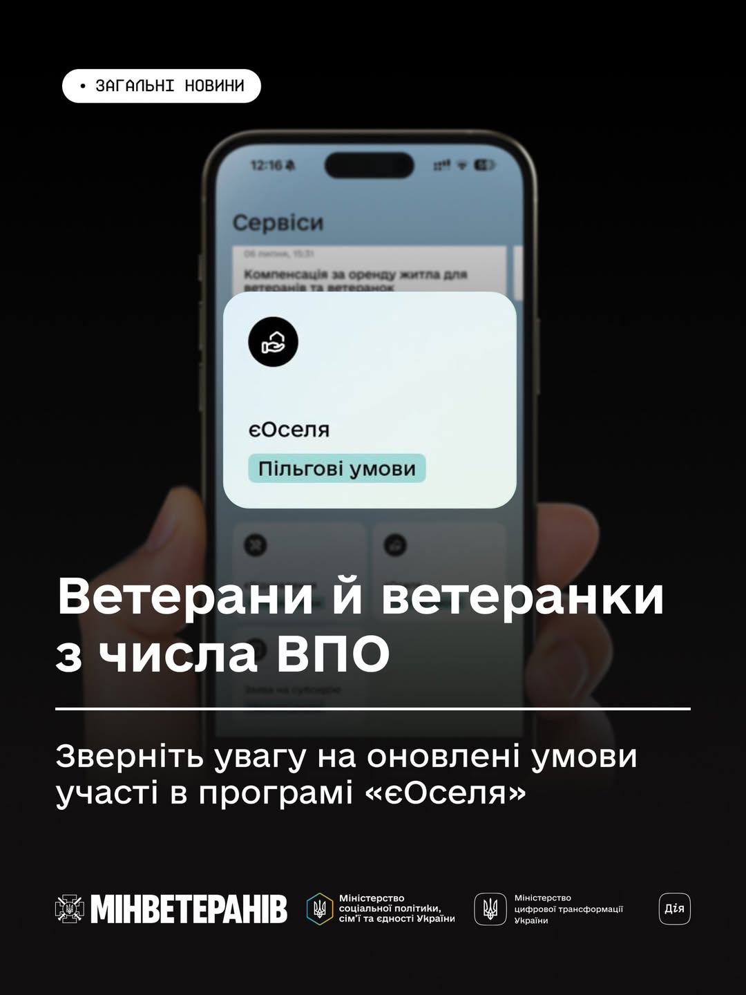 ## Оновлені умови програми «єОселя»: більше доступності для ветеранів та ВПО