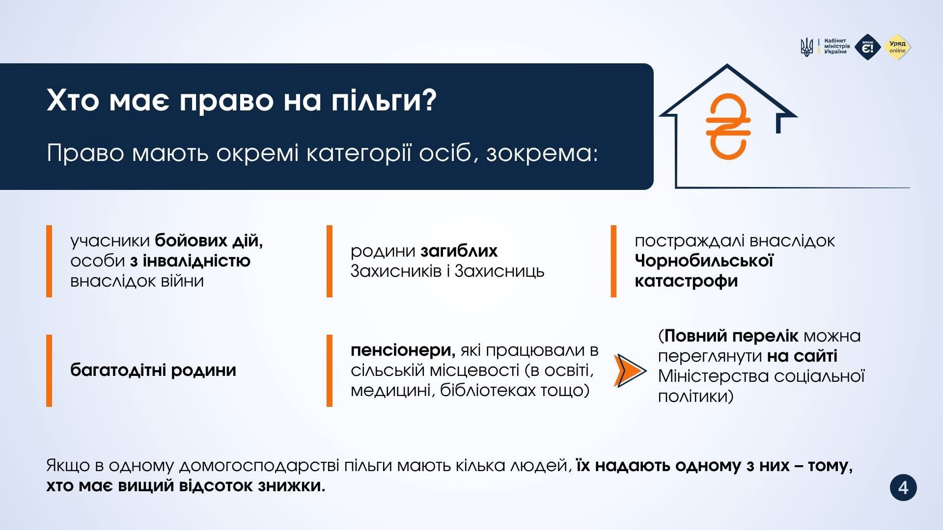 Ветерани, пенсіонери, багатодітні родини та інші пільгові категорії можуть отримати знижку на оплату комунальних послуг.