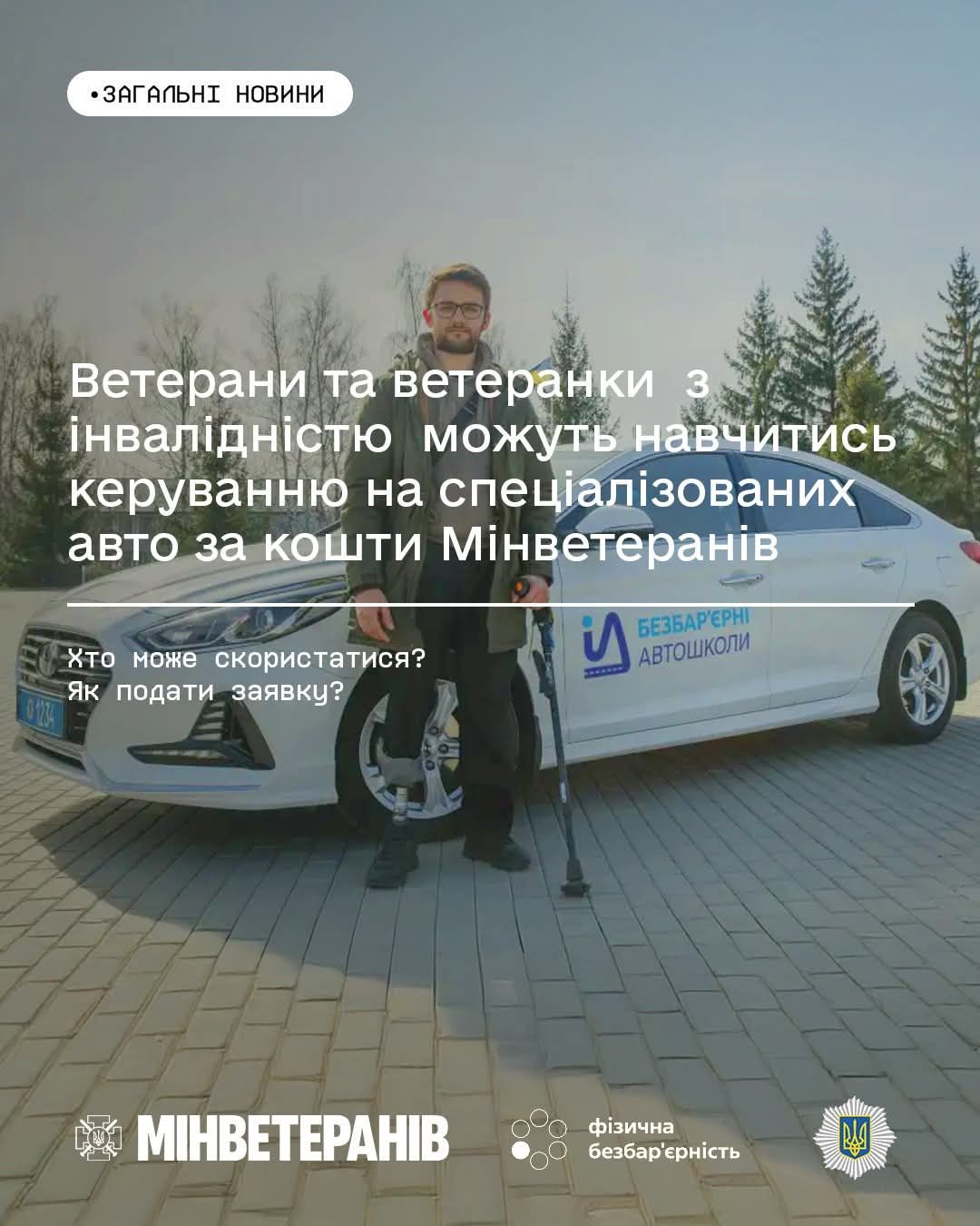 Навчання водінню для ветеранів з інвалідністю за кошти Мінветеранів
