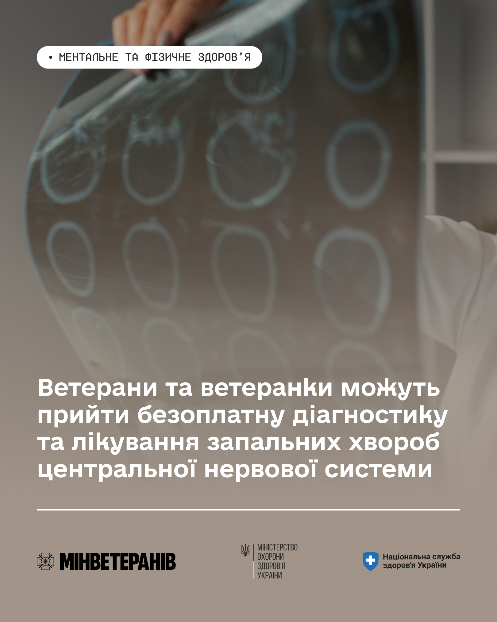 Ветерани та ветеранки України мають можливість отримати безоплатну діагностику та лікування запальних хвороб центральної нервової системи. Це важлива підтримка для тих, хто захищав нашу країну.