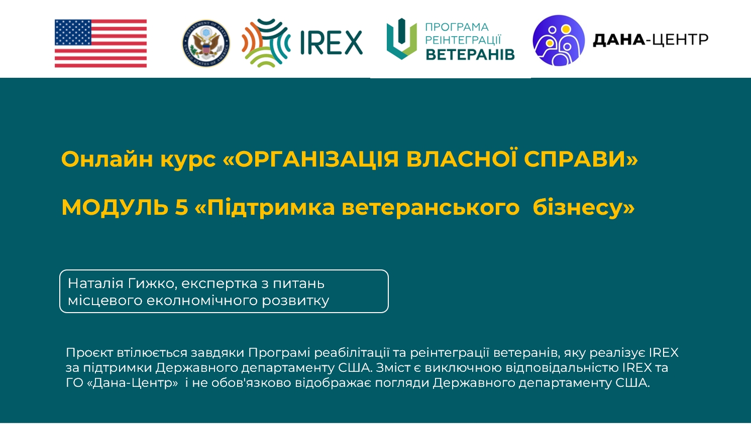 💙 Нагадуємо, що навчання відбулося в межах проєкту #ЗТепломУСерціДоСерця, який втілюється ГО «ДАНА-Центр» завдяки Програмі реабілітації та реінтеграції ветеранів, що реалізує IREX за підтримки Державного департаменту США. Зміст є виключною відповідальністю IREX та ГО «Дана-Центр» і не обов’язково відображає погляди Державного департаменту США.