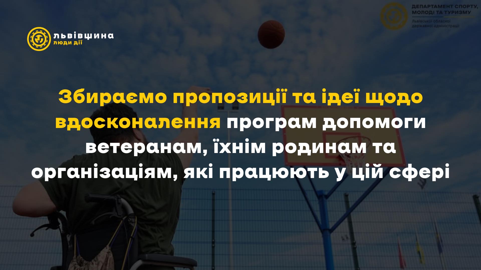 Ми прагнемо, щоб система підтримки ветеранів базувалася виключно на реальних потребах тих, хто пройшов війну, повернувся до громади, виховує дітей, навчається або шукає нову справу для себе. Саме тому Управління з питань ветеранської політики Львівської обласної державної адміністрації активно збирає пропозиції та ідеї щодо вдосконалення програм допомоги ветеранам, їхнім родинам та організаціям, які працюють у цій важливій сфері. Кожне звернення буде ретельно опрацьоване, адже саме з таких індивідуальних голосів складається справді якісна державна політика, що відображає інтереси громадян.