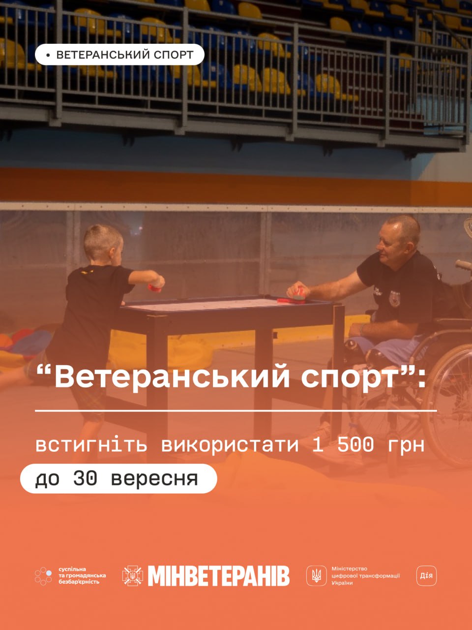 ❗️«Ветеранський спорт»: скористайтеся можливістю отримати 1 500 грн до 30 вересня!