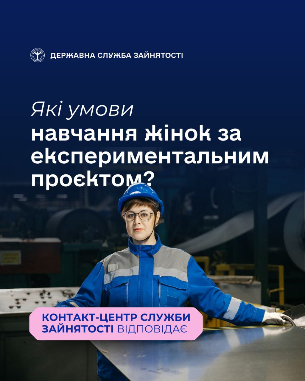 👉 При виникненні додаткових питань щодо навчання жінок за експериментальним проєктом, можна звернутися до найближчого центру зайнятості, або ж зателефонувати до спеціалістів контакт-центру за безкоштовним номером 1518. Такі консультації надаються: з понеділка по четвер з 9:00 до 18:00, у п’ятницю з 9:00 до 16:45. Скористайтеся цією можливістю для власного професійного розвитку!