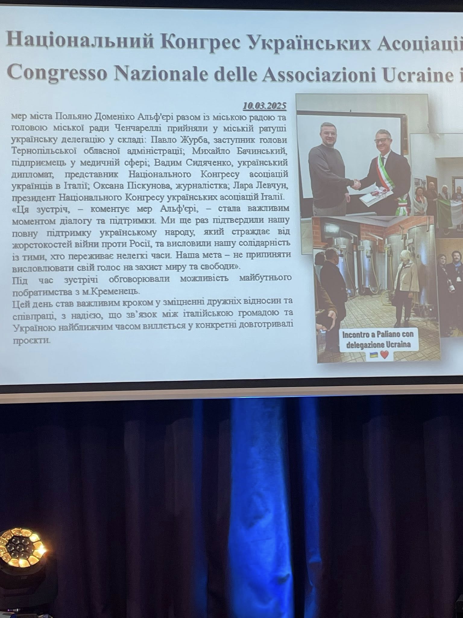Висловлюю щиру подяку Національному Конгресу асоціацій українців в Італії та Тернопільській обласній державній адміністрації за підтримку та сприяння участі у форумі. Ваша підтримка є надзвичайно важливою для зміцнення міжнародних зв’язків та залучення ресурсів для розвитку України.