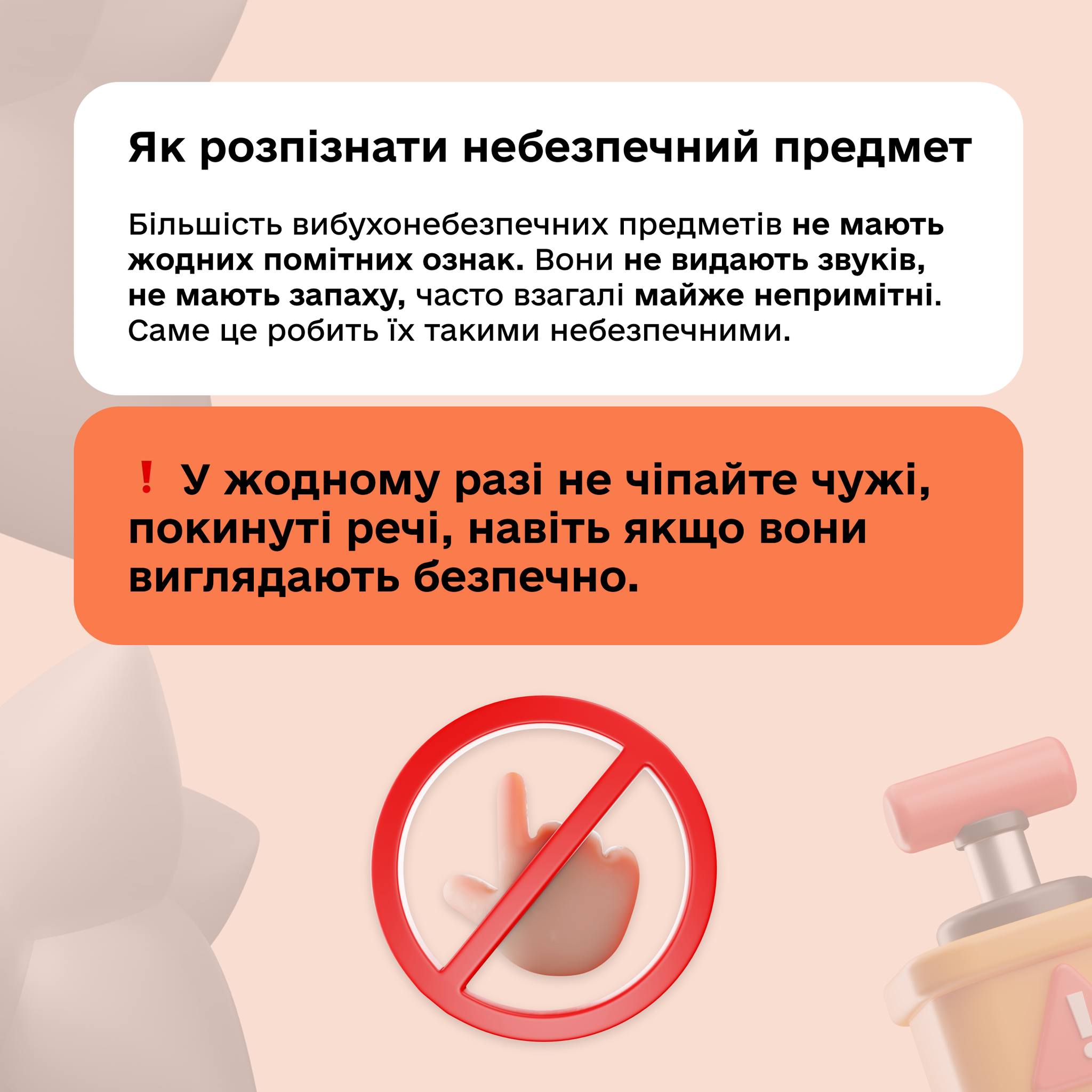 Мінна безпека – це не просто набір правил, це запорука вашої безпеки та безпеки ваших близьких. Пам’ятайте, що пильність та обережність можуть запобігти трагедії. Вибухонебезпечні предмети можуть мати вигляд звичайних речей, тому важливо знати, на що звертати увагу.