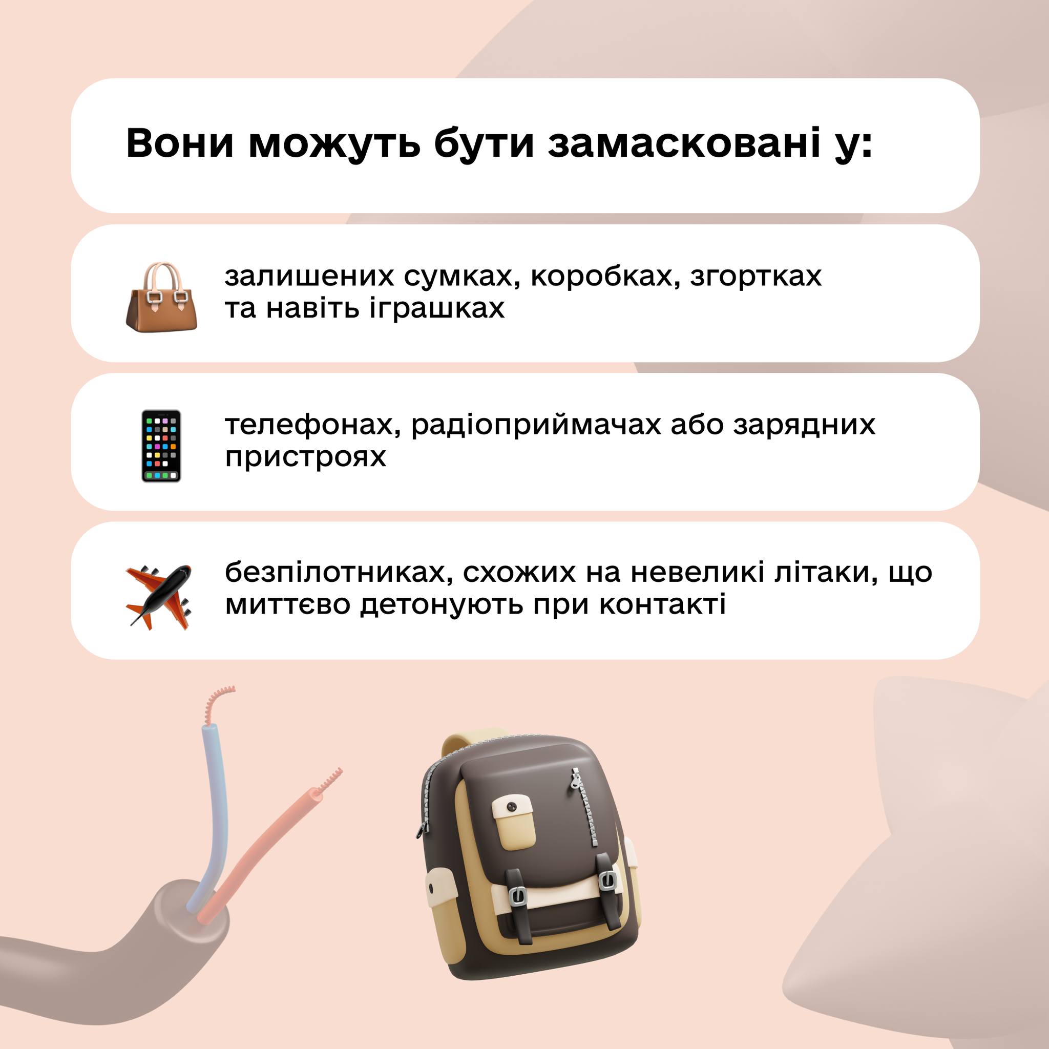 Вибухонебезпечні предмети можуть бути замасковані у звичайних речах, наприклад, у дитячих іграшках. Важливо знати правила мінної безпеки, адже це може врятувати життя. В умовах воєнного стану, коли ризик натрапити на вибухонебезпечний предмет зростає, знання правил мінної безпеки стає критично важливим.
