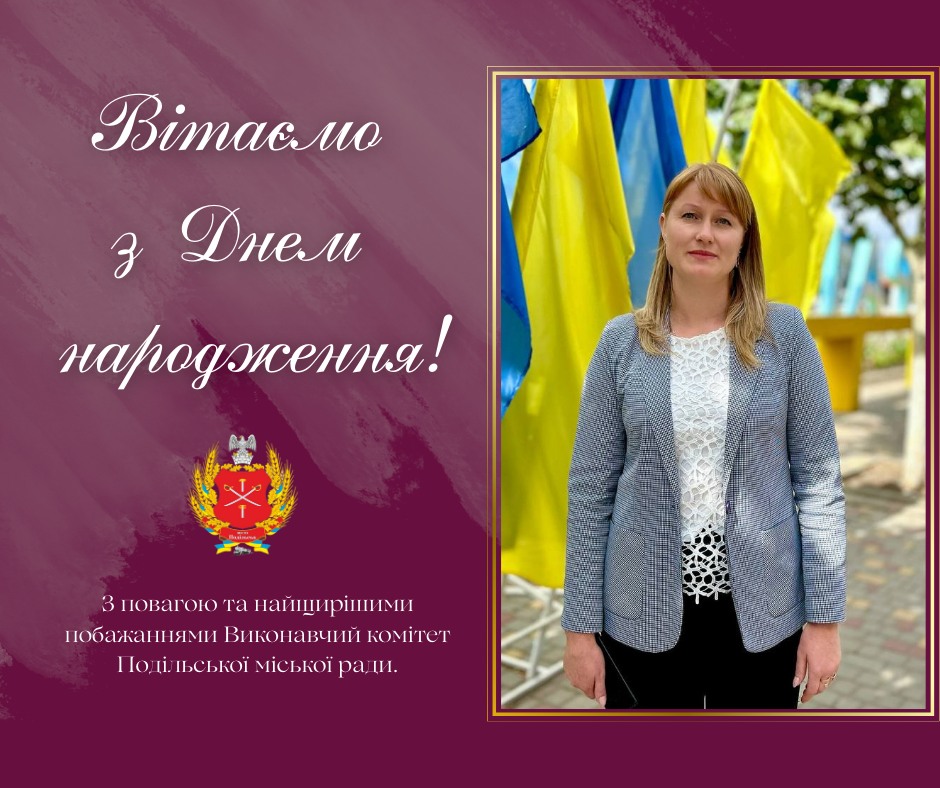 Виконавчий комітет Подільської міської ради надсилає найщиріші вітання з нагоди дня народження старости Липецького старостинського округу – Вікторії Лазаренко!