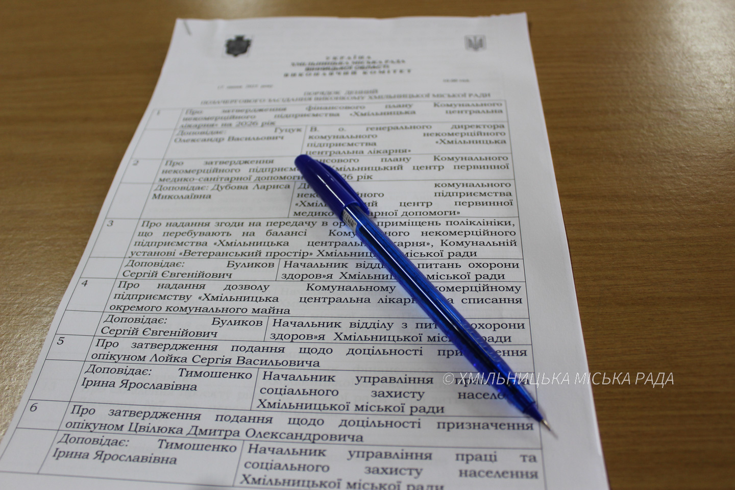 - Фінансове планування закладів охорони здоров’я: Затверджено фінансові плани Комунального некомерційного підприємства «Хмільницька центральна лікарня» та КНП «Хмільницький Цпмсд» Хмільницької міської ради на 2026 рік. Це забезпечить стабільну роботу медичних установ.
