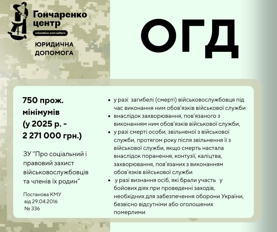 Існує інша виплата ОГД – у розмірі 15 мільйонів гривень. Вона регулюється постановою КМУ № 168 від 28 лютого 2022 року.