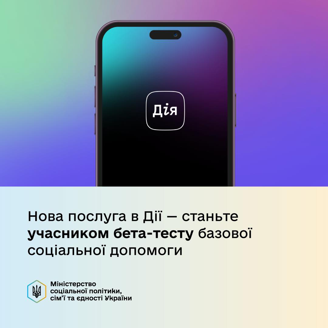 📲 Спробуйте першими нову послугу в “Дії” — оформлення базової соціальної допомоги!