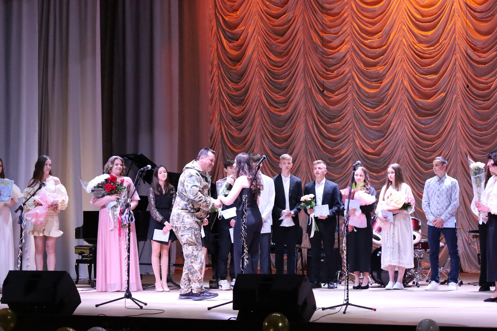 Звягельський міський голова Микола Боровець у своїй промові підкреслив, що молоде покоління незалежної України є сильним, вольовим і надзвичайно талановитим. Він висловив впевненість, що саме завдяки цим молодим людям Україна стане ще могутнішою та красивішою, і Перемога буде ближчою. Міський голова подякував викладачам і батькам за їхню працю, віру та любов до рідної землі, побажавши випускникам творчої наснаги, мирного неба, натхнення та нових звершень. Концертна програма вечора була наповнена піснями та музичними композиціями у виконанні талановитих юних музикантів, які не залишили байдужим жодного глядача. Кульмінацією свята стало вручення свідоцтв про здобуття мистецької освіти шістдесяти шести вихованцям школи.