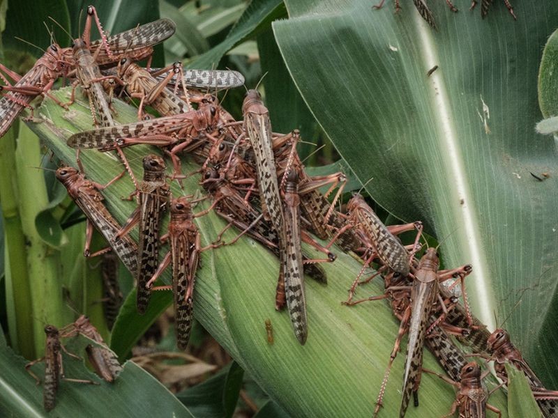 🌡Висока температура та посушлива погода цього року спровокували масове розмноження небезпечного шкідника – сарани, особливо в південних та східних регіонах України. Запорізька, Херсонська та Дніпропетровська області зазнали значного збільшення чисельності цих комах.