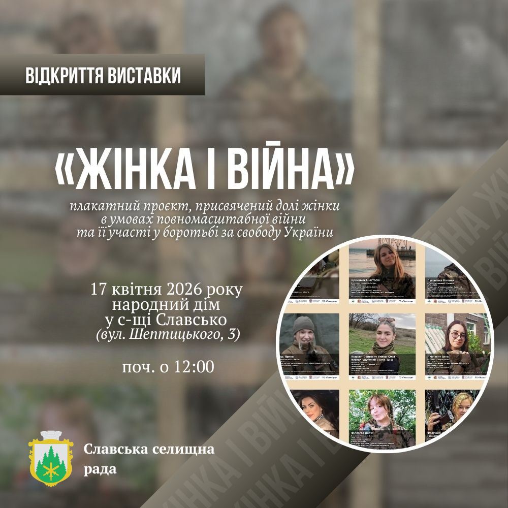 17 квітня 2026 року о 12:00 год. у народному домі Славська відбудеться відкриття виставки «Жінка і війна» – плакатного проєкту, присвяченого долі жінки в умовах повномасштабної війни та її участі у боротьбі за свободу України.