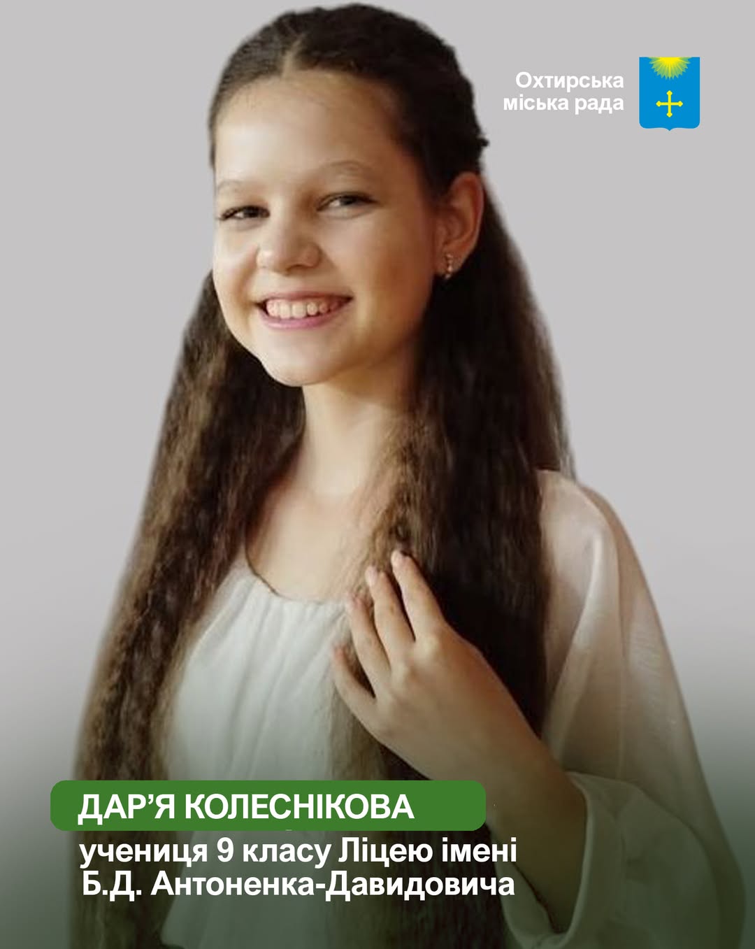 🟢 Чудові новини з Охтирки! Вихованка Охтирського міського центру позашкільної освіти – Малої академії наук (ОМЦПО-МАН), Дар’я Колеснікова, стала стипендіаткою Сумської обласної державної адміністрації. Це значне досягнення для юної науковиці та її громади.
