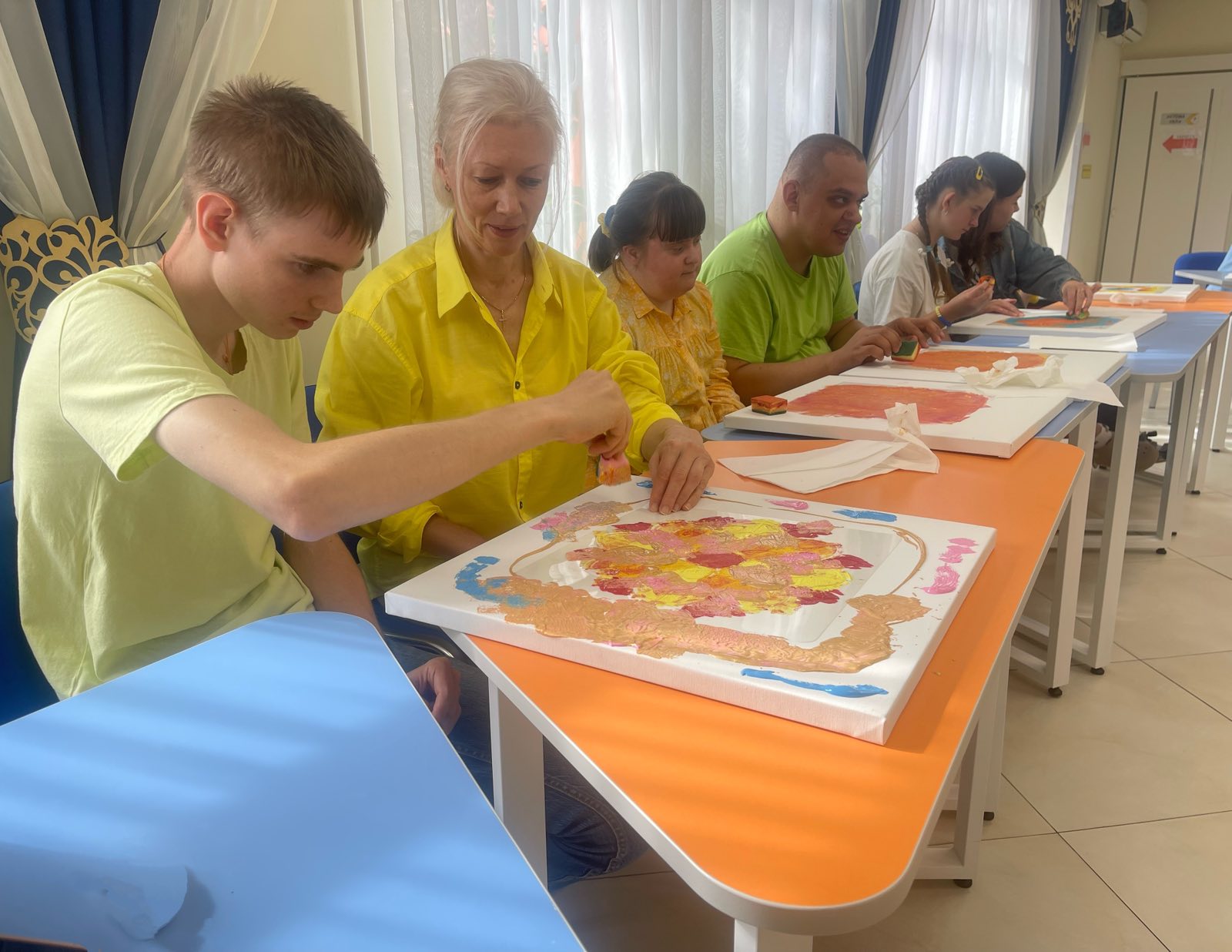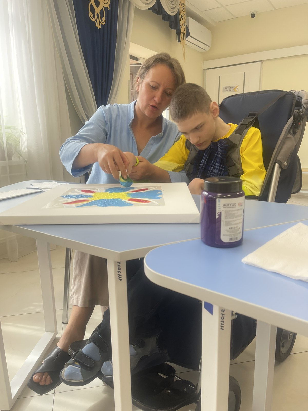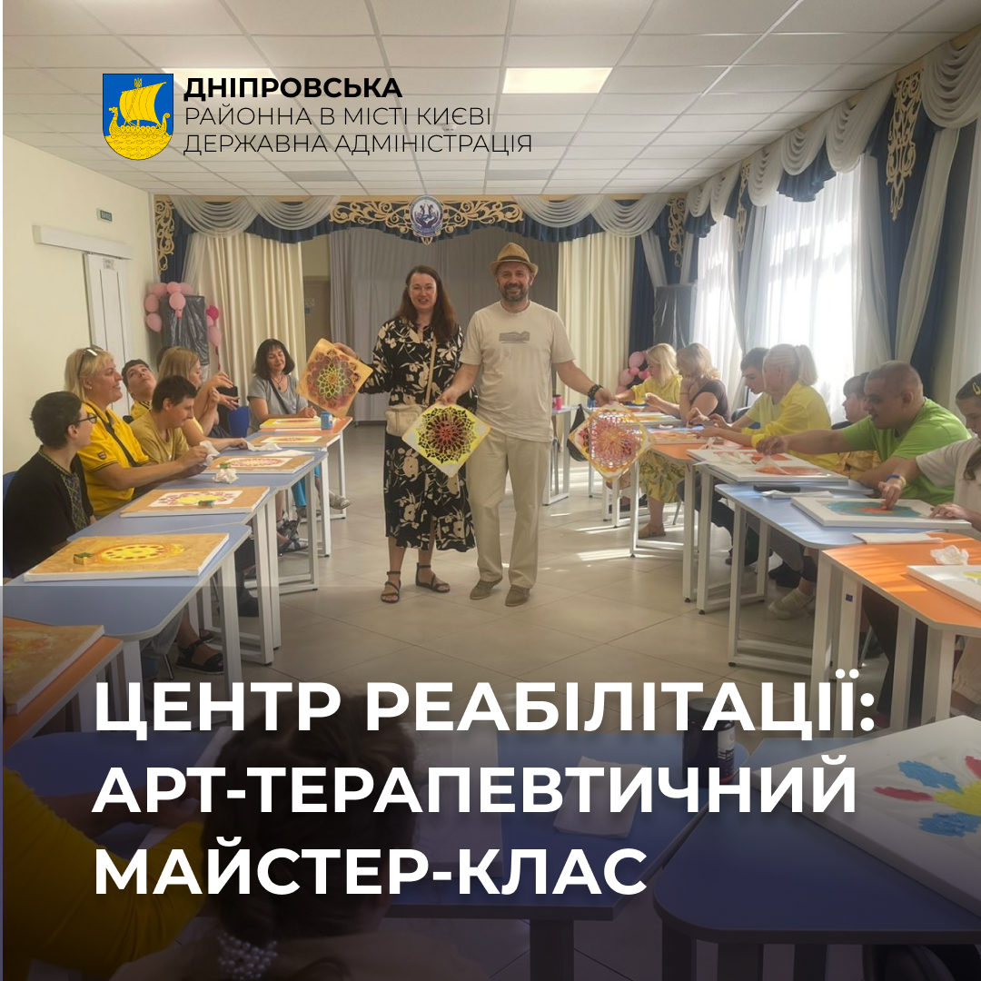 Вихованці районного Центру реабілітації для осіб з інвалідністю УСВП Дніпровської районної в місті Києві державної адміністрації взяли участь у захоплюючій арт-терапевтичній діяльності, створюючи на полотні справжні мистецькі шедеври. Ця терапевтична діяльність спрямована на розвиток творчих здібностей та покращення емоційного стану дітей.