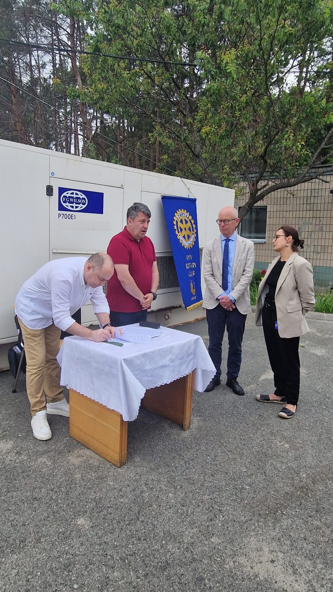Офіційна церемонія передачі генератора громаді Вишгорода відбулася 17 червня 2025 року. На заході були присутні ключові особистості, зокрема очільник громади Олексій Момот, заступник Вишгородського міського голови Віталій Сардак, Посол Королівства Данія в Україні пан Олє Едберг Міккельсен, президент Ротарі клубу Київ Сергій Балац, представники клубу, керівник ВМКП «Водоканал» Георгій Чебан разом із командою, а також небайдужі жителі громади.