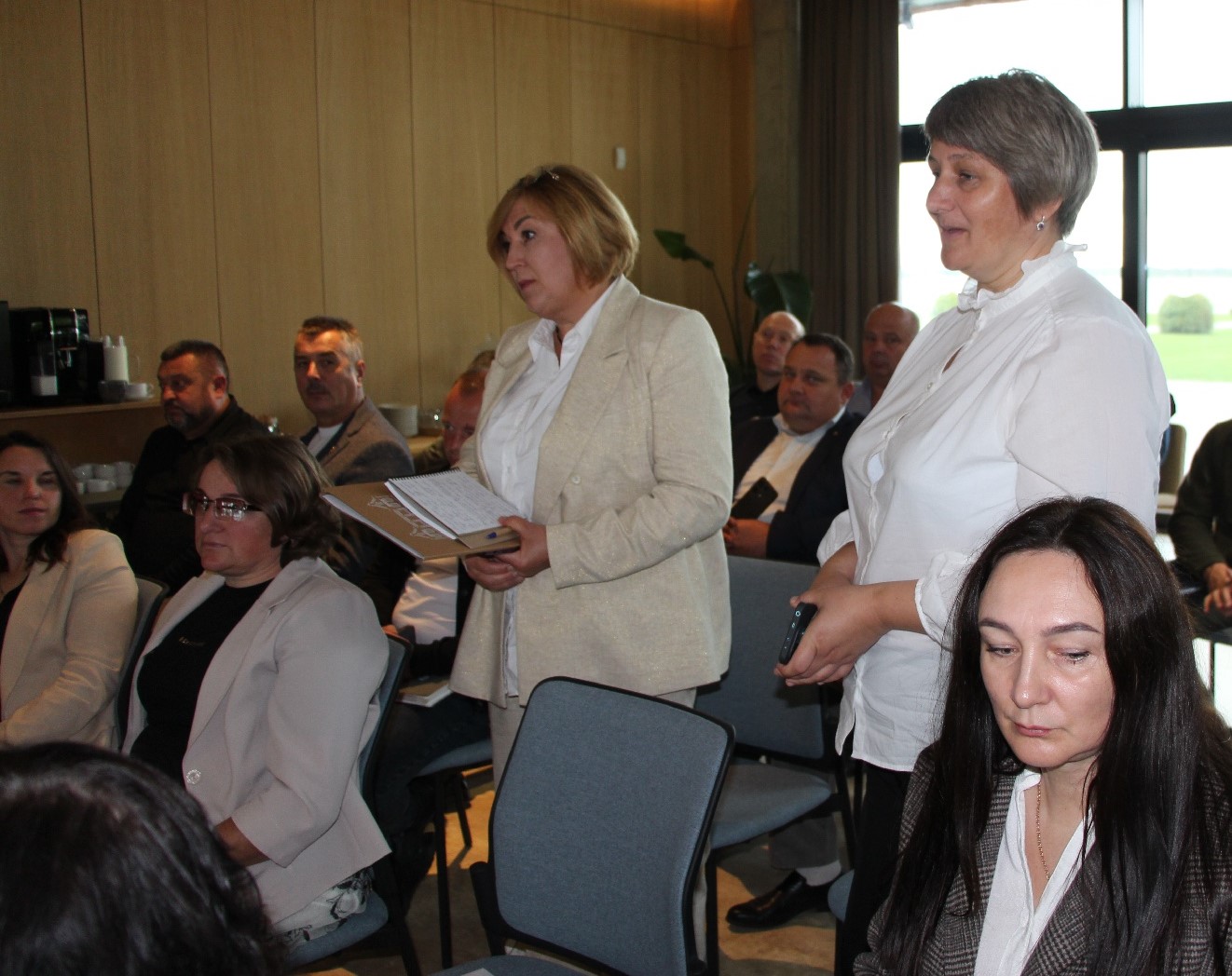 Секретар Дубечненської сільської ради Алла Лавренюк поділилася з колегами успішними здобутками громади, презентувала реалізовані проєкти та поінформувала про хід будівництва укриття для ліцею в селі Любохини. Це свідчить про активну роботу громад на місцях та їхню відданість розвитку своїх територій.