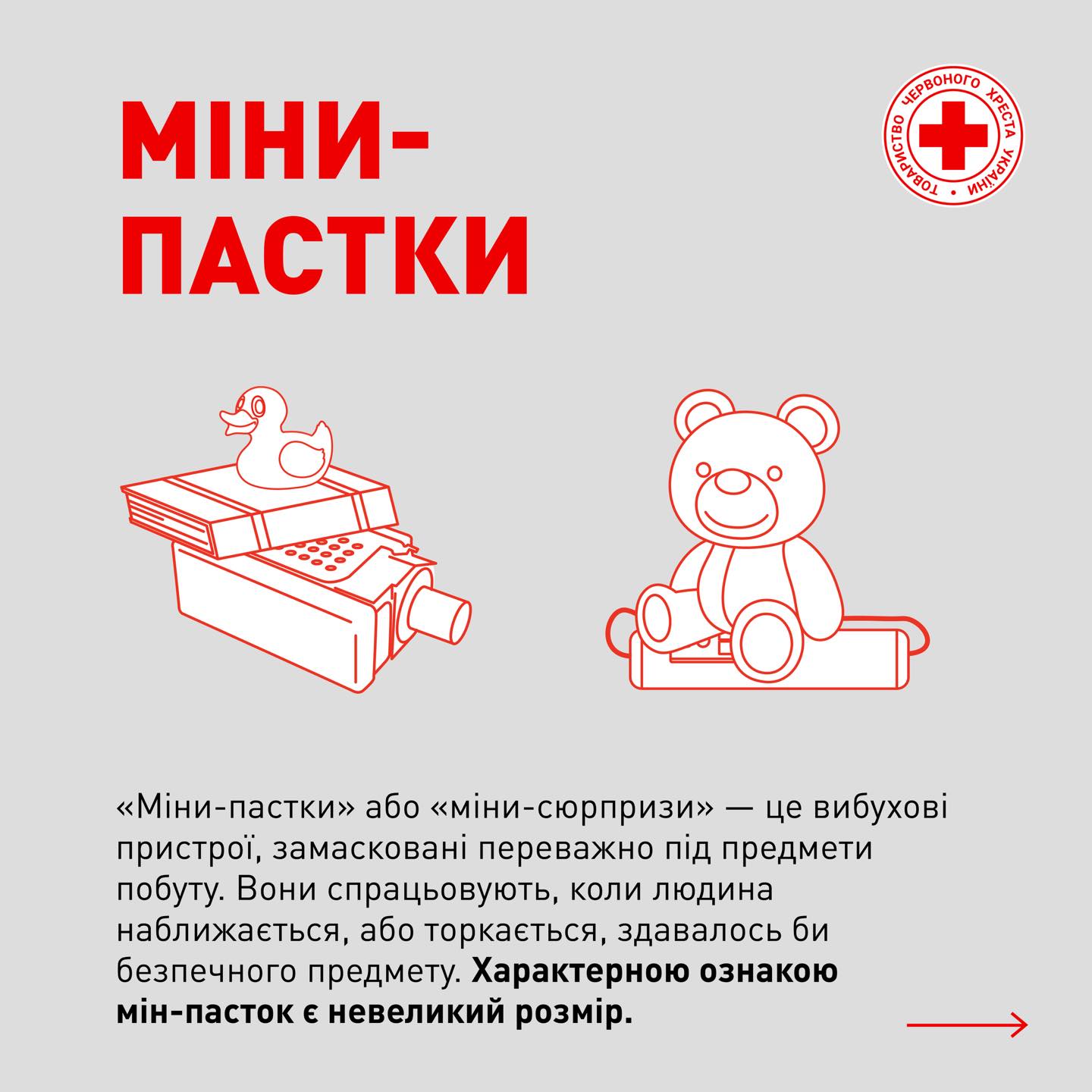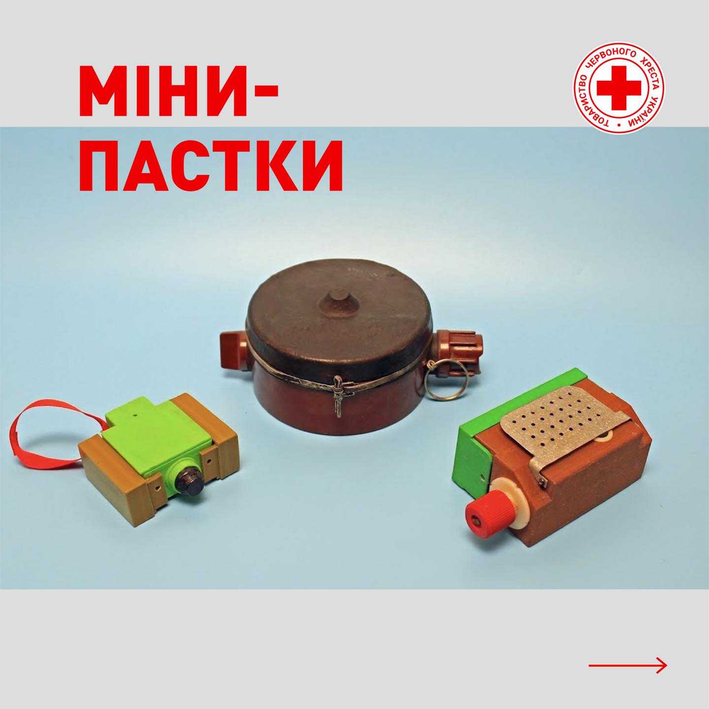 Це будь-який пристрій або матеріал, призначений для завдання шкоди. Він спрацьовує несподівано, коли людина торкається або наближається до предмета, який на перший погляд здається безпечним. Міни-пастки зазвичай мають невеликий розмір і можуть бути замасковані під звичайні речі. Будьте пильні та не торкайтеся підозрілих предметів.
