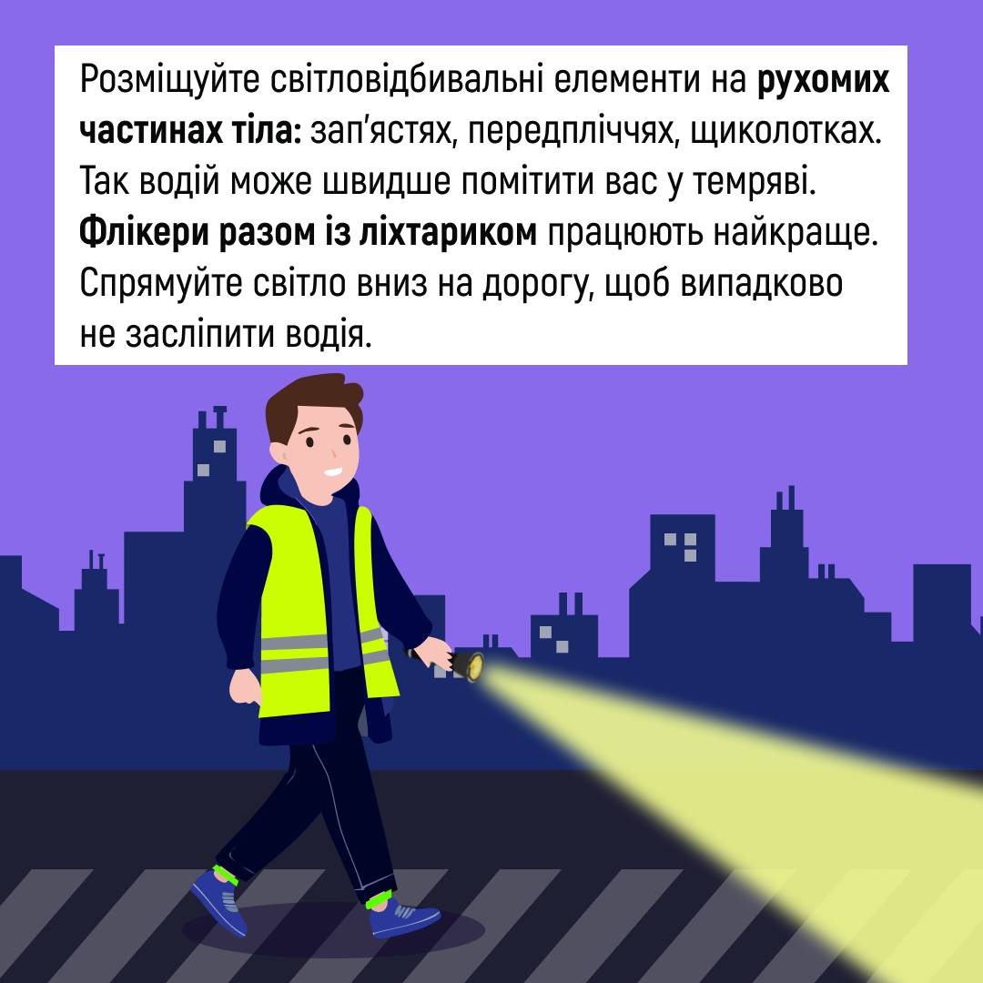 👇 Переглядайте картки, щоб кожна прогулянка у темну пору доби була безпечною.