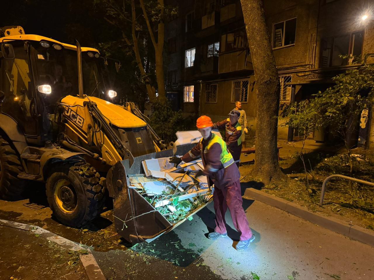 Комунальні служби Харкова розпочали ліквідацію наслідків обстрілу ще вночі. Працівники КП «Харківське ремонтно-будівельне підприємство» та КП «Харківжитлобуд» оперативно закривають вибиті вікна, щоб захистити мешканців від негоди та подальших руйнувань. КП «Харківблагоустрій» займається прибиранням уламків, великогабаритного сміття, гілок та впорядковує прибудинкові території. Роботи з ліквідації наслідків тривають, щоб якнайшвидше повернути місто до нормального життя.