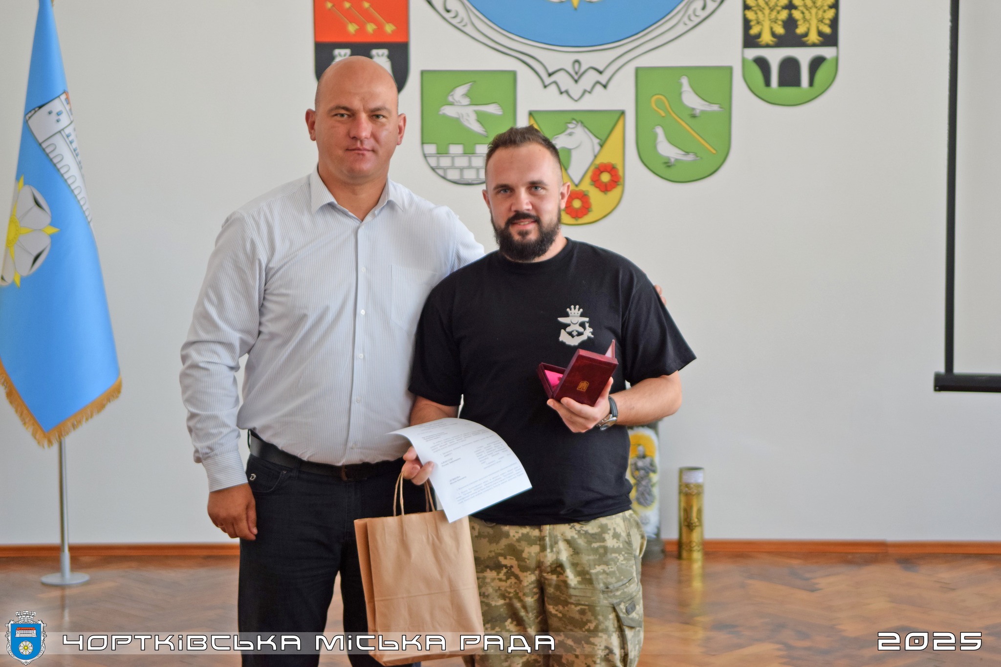 Володимир Шматько, міський голова, відзначив героїзм та самовідданість захисників України з Чортківської громади, нагородивши їх найвищою відзнакою міського голови «За честь і відвагу». Нагороди отримали Руслана Алєксєєва та Віталій Душков за їхню особисту мужність, проявлену у захисті державного суверенітету та територіальної цілісності України. Вони продемонстрували вірність військовій присязі, зразкове виконання службових обов’язків, а також титанічні зусилля, самопожертву та героїзм.