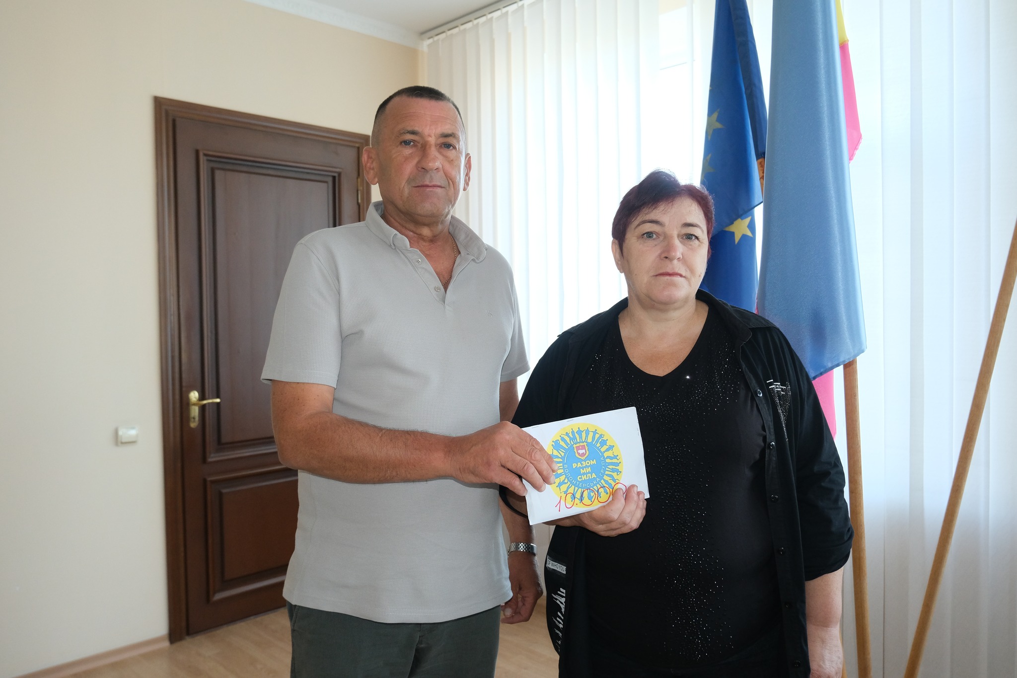 Керівник ВГ “Разом ми сила” Геннадій Терлецький та міський голова Віктор Бичков передали відповідну суму коштів його матері Надії Іванівні з побажаннями Перемоги!