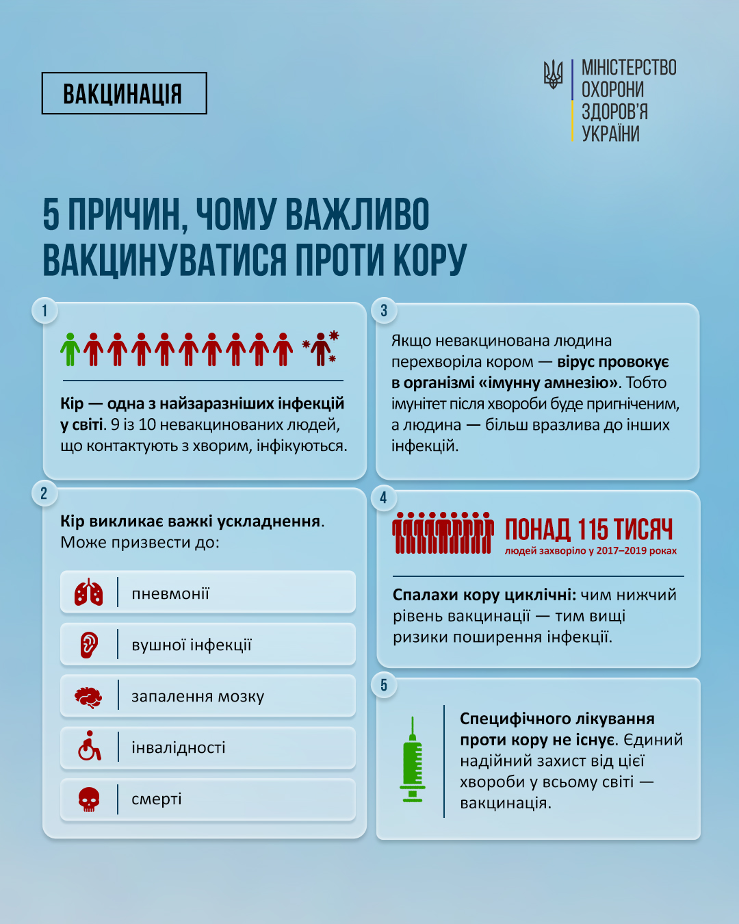 5️⃣ Специфічного лікування від кору не існує. Сучасна медицина не має препарату, який би ефективно боровся з вірусом кору після зараження. Єдиним надійним і перевіреним у всьому світі методом профілактики та захисту від цієї небезпечної хвороби залишається вакцинація.