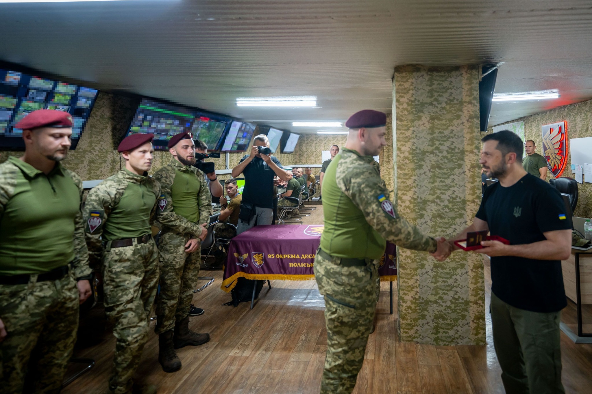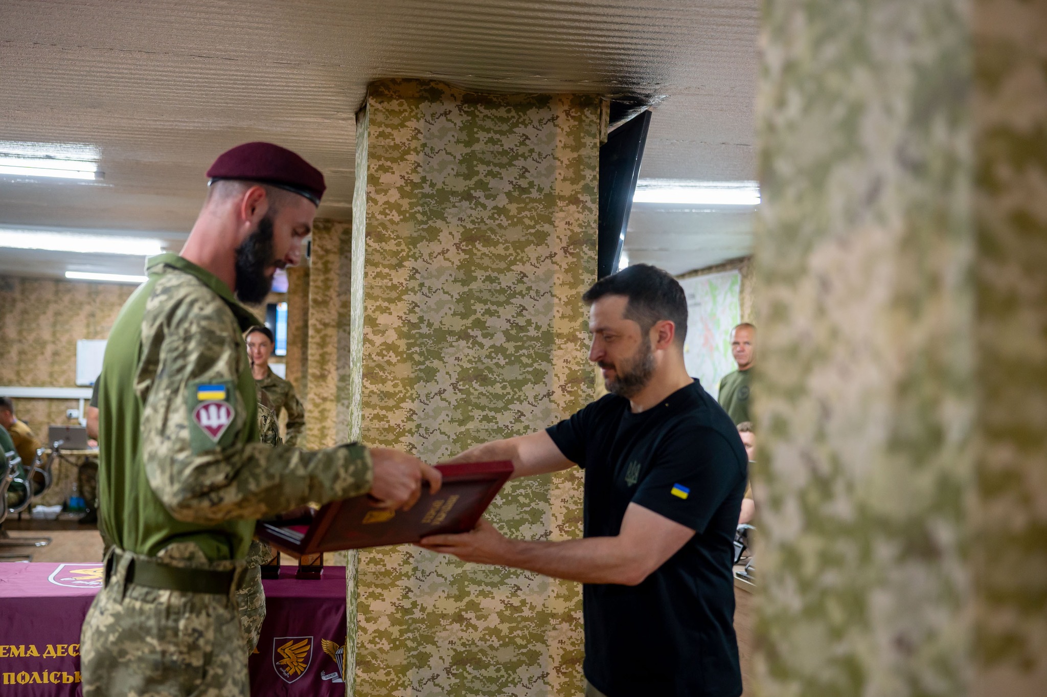 Воїни 95-ї окремої десантно-штурмової Поліської бригади – сьогодні на пункті управління підрозділу зустрівся з бійцями, подякував за участь у Курській операції та відзначив їх державними нагородами.