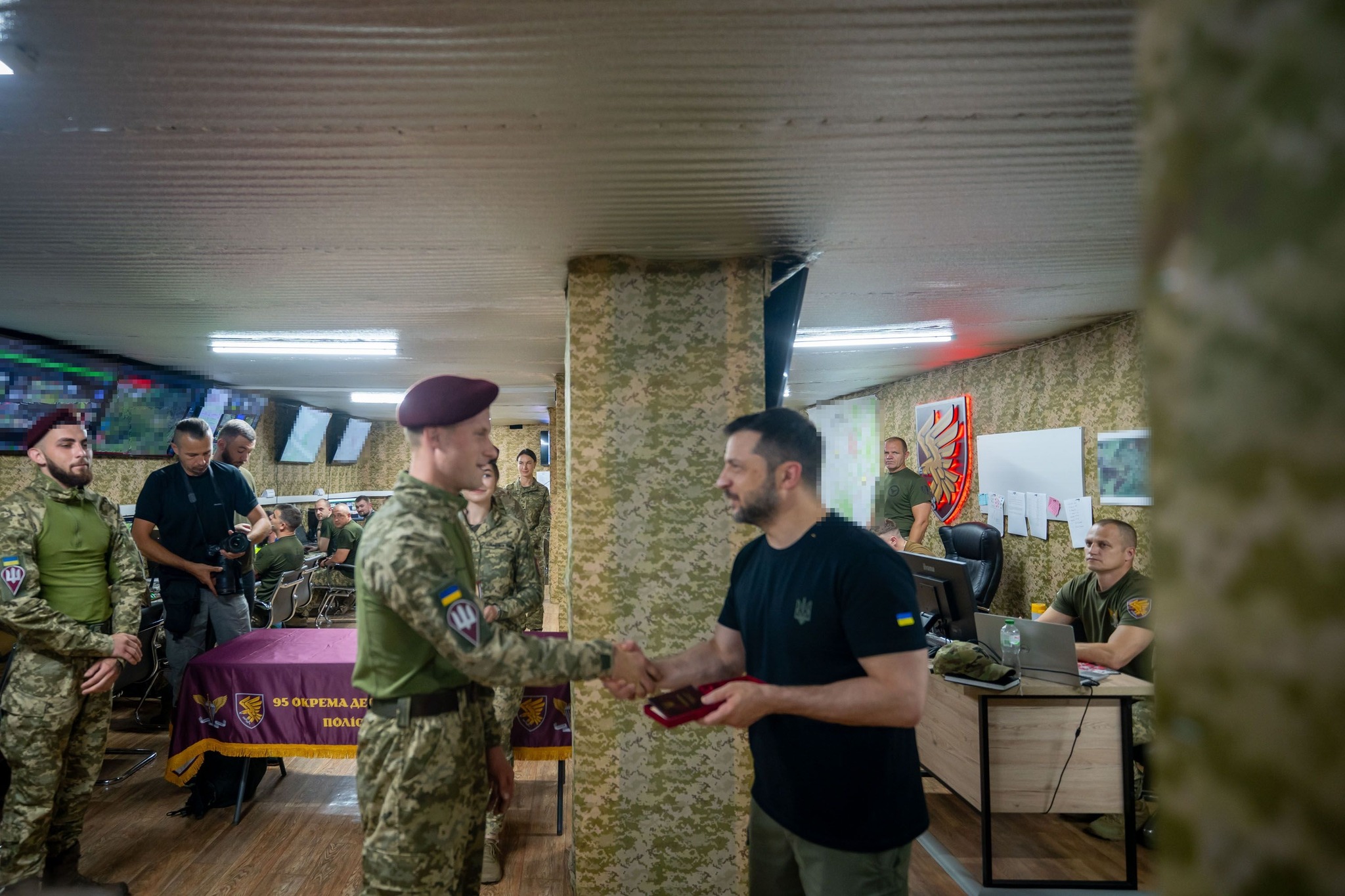 The warriors of the 95th Polissia Separate Air Assault Brigade – today, at the unit’s command post, I met with the fighters, thanked them for their participation in the Kursk operation, and presented them with state awards.