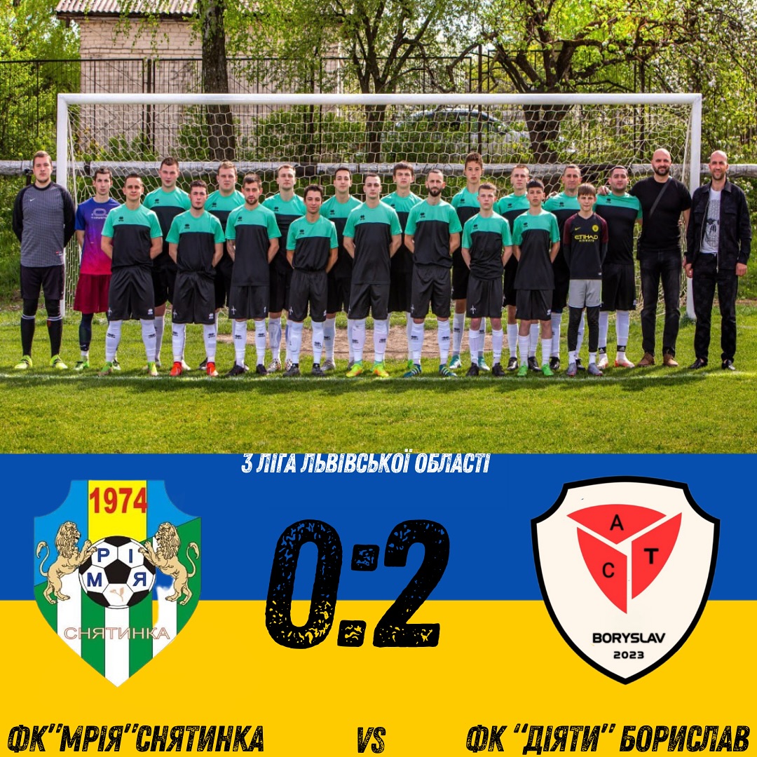 ⚽️ У неділю, 22 червня, в рамках Третьої ліги Львівської області відбувся матч між командами ФК “Діяти” (Борислав) та ФК “Мрія” (Снятинка). Наші хлопці продемонстрували злагоджену командну гру, впевненість і спортивну майстерність, здобувши впевнену перемогу з рахунком 0:2. Голи забили: Микола Павліш, Василь Панас.