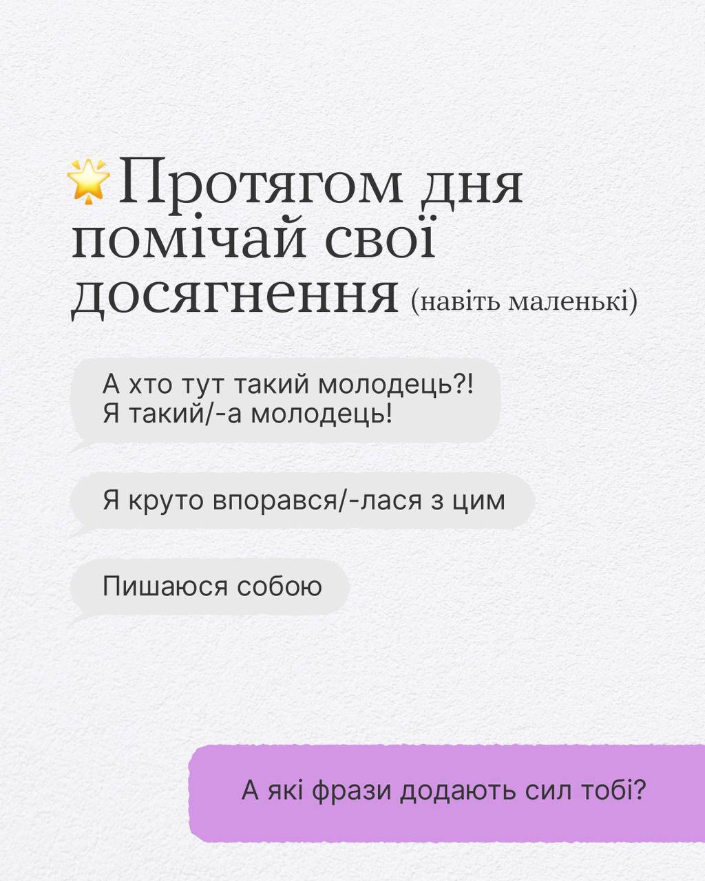 Впевненість у собі – це не вроджена риса, а навичка, яку кожен може розвинути. Хороша новина полягає в тому, що впевненість доступна для тренування всім нам. Програма ментального здоров’я «Ти як?» пропонує практичні поради від експертів, які допоможуть вам почати шлях до становлення більш впевненою особистістю. У каруселі ви знайдете ключові кроки та вправи для поступового зміцнення вашої самооцінки та віри у власні сили. Розвиток впевненості у собі – це процес, який вимагає часу та зусиль, але результати варті того. Почніть з маленьких кроків, відзначайте свої досягнення та не бійтеся виходити із зони комфорту. Кожна спроба, навіть невдала, є кроком до вдосконалення. Психологічна стійкість формується через досвід і самопізнання. Вчіться приймати себе, цінувати свої сильні сторони та працювати над слабкими. Не порівнюйте себе з іншими, зосередьтеся на власному прогресі. Ментальне здоров’я є фундаментом для особистісного росту, а впевненість у собі – його невід’ємною частиною. Скористайтеся інструментами, які пропонує програма «Ти як?», щоб зробити перші кроки у цьому напрямку. Пам’ятайте, що ви маєте потенціал для розвитку. Важливо лише почати діяти та послідовно працювати над собою. Тренування впевненості – це інвестиція у ваше майбутнє, яка принесе значні плоди. #тияк