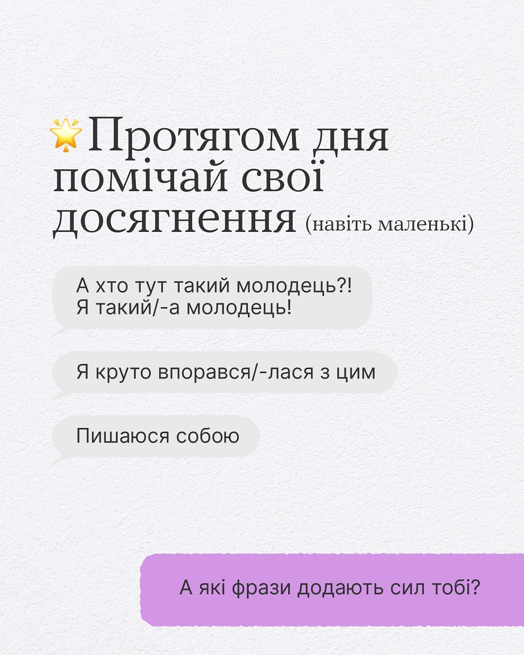 У каруселі знайдеш підказки, з чого можна почати на цьому шляху, щоб поступово ставати впевненішим/-ою у собі🫰
