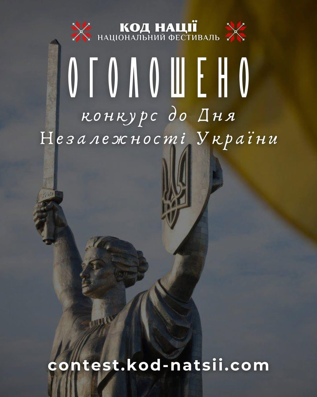 За традицією, Національним Фестивалем “Код Нації” оголошено проведення Всеукраїнського конкурсу творчих проєктів “Код Нації” до 34-ї річниці Незалежності України. Головною метою Конкурсу є створення творчих проєктів – художніх, декоративно-ужиткових, вокальних, хореографічних, сценічних та інших – відповідно до його тематики, з метою розвитку та утвердження в українському суспільстві культурних, освітніх, духовних і патріотичних цінностей.