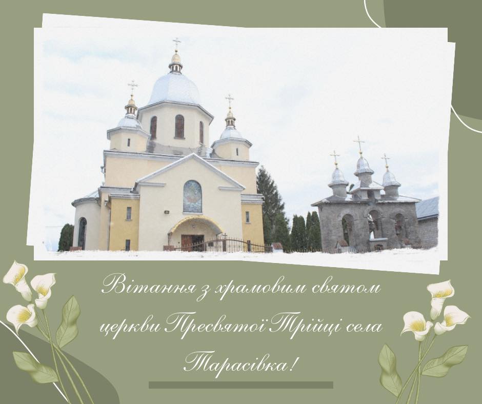 Всечесний отче Романе, шановна громадо села Тарасівка! Щиро вітаємо вас із світлим храмовим святом! Нехай Пресвята Трійця зцілить ваші душевні та тілесні рани, принесе мир, спокій, радість і благословення вашій парафії та всьому українському народу.