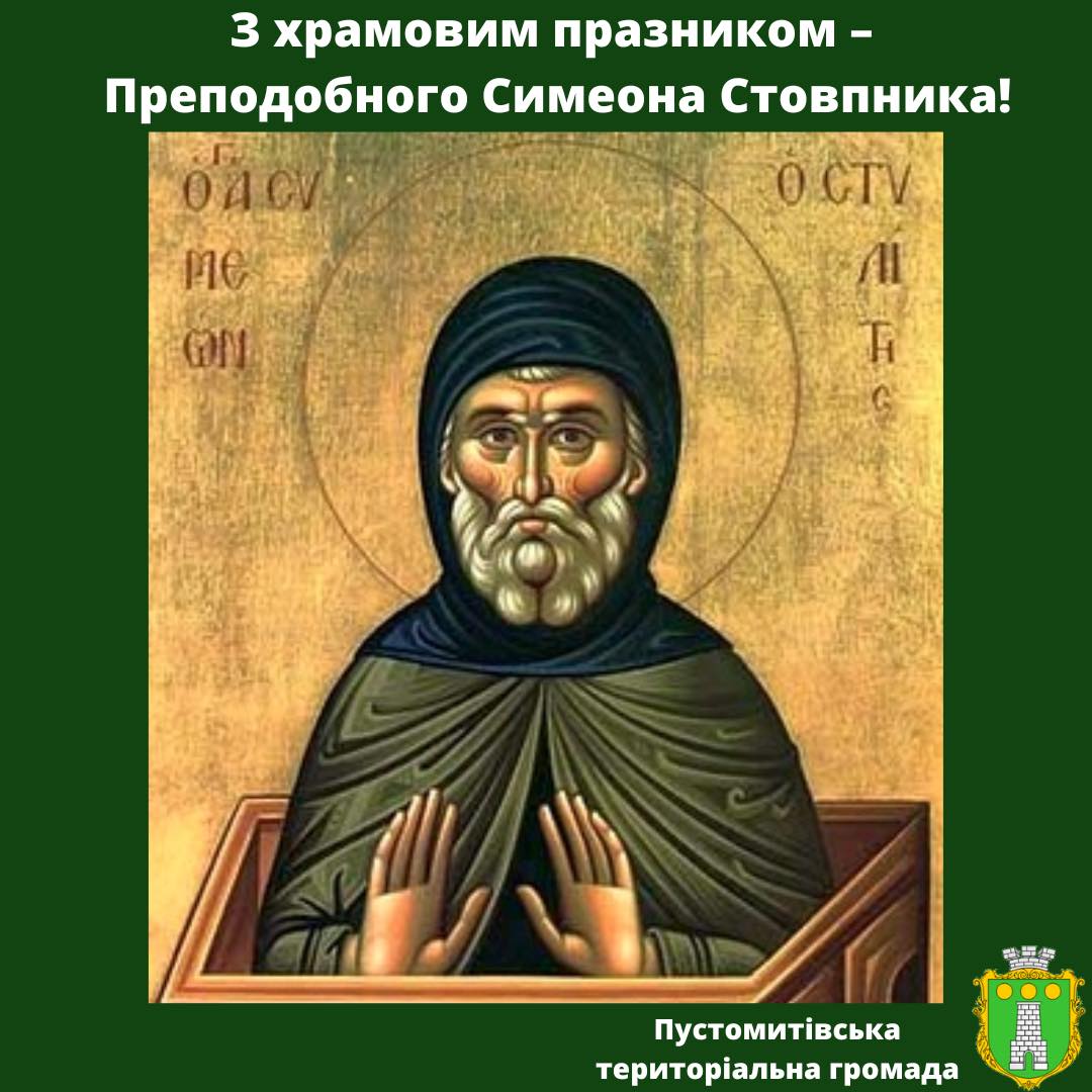 Пустомитівська міська рада щиро вітає вас із храмовим святом Преподобного Симеона Стовпника! У цей особливий день ми бажаємо вам міцного здоров’я, безмежного щастя, затишку у ваших домівках та успіху у всіх починаннях. Нехай Господь, за заступництвом Преподобного Симеона Стовпника, покровителя нашої церкви, завжди підтримує нас, оберігає наших мужніх українських воїнів, даруючи їм життя та силу у боротьбі за перемогу. Нехай він обдарує всіх вас довгими літами, духовною силою та натхненням. Бажаємо допомоги у вашій щирій праці на славу Христової Церкви, нашої громади та всієї України. Нехай цей благословенний час Господньої ласки принесе у ваші родини здоров’я, злагоду, взаєморозуміння, любов і добробут. А нашій рідній українській землі — довгоочікуваний переможний мир та спокій. З непохитною вірою у майбутнє України та з добрими помислами, хай цей день буде сповнений світла, радості та надії!