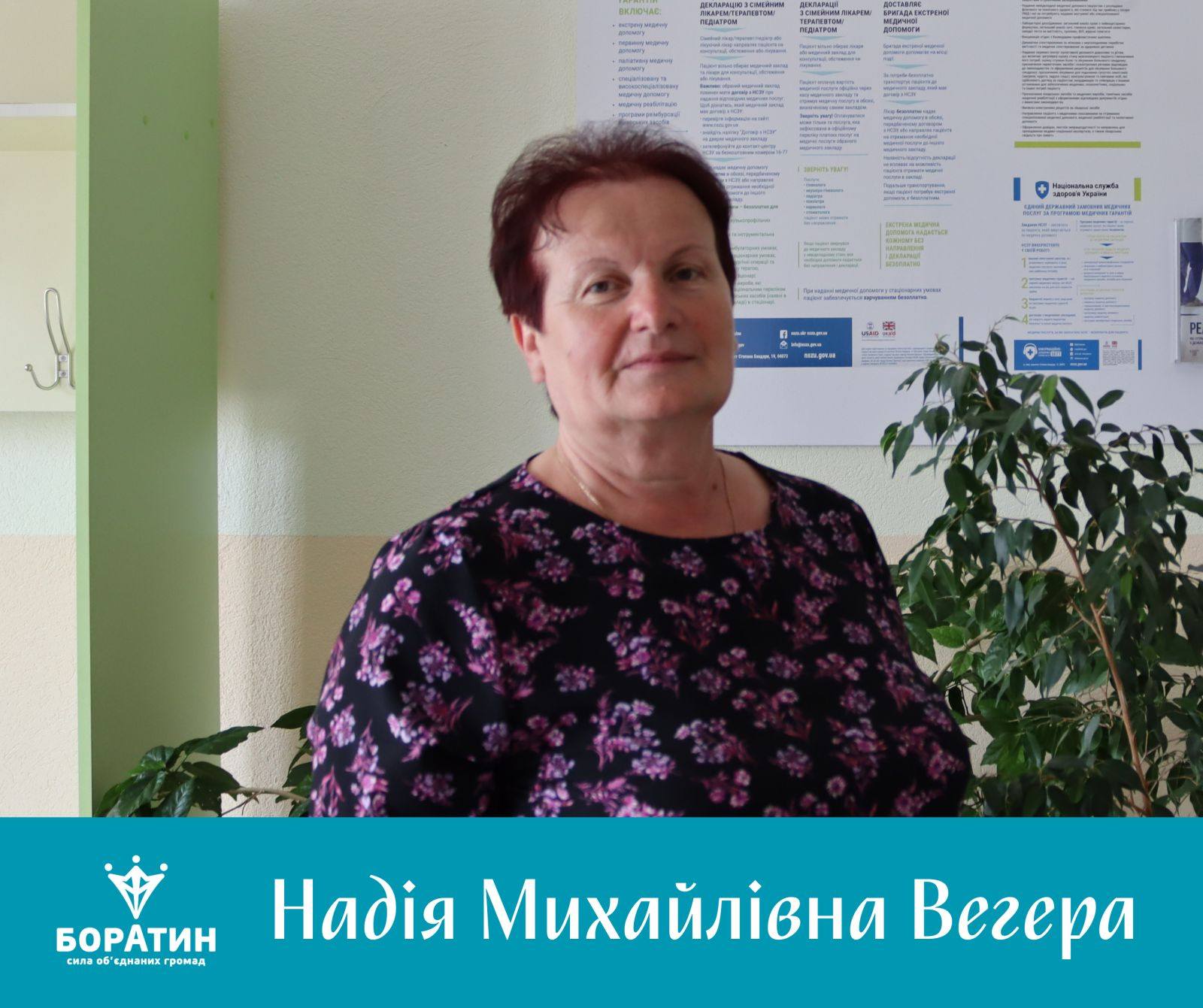 🔹 Надія Михайлівна Вегера, медична сестра загальної практики сімейної медицини Баївської АЗПСМ, може похвалитися 40 роками бездоганного медичного стажу. Її шлях у медицині розпочався у 1985 році. З юності її вабила професія, пов’язана з білим халатом та можливістю полегшувати страждання людей у найскладніші моменти. Остаточний вибір на користь медицини Надія Михайлівна зробила під впливом старшої сестри, яка вже була частиною медичної спільноти. За чотири десятиліття своєї кар’єри пані Надія стала справжнім втіленням турботи, терпіння та високого професіоналізму. Вона – людина, до якої звертаються не лише за медичною допомогою, а й за мудрою порадою та щирим словом підтримки.