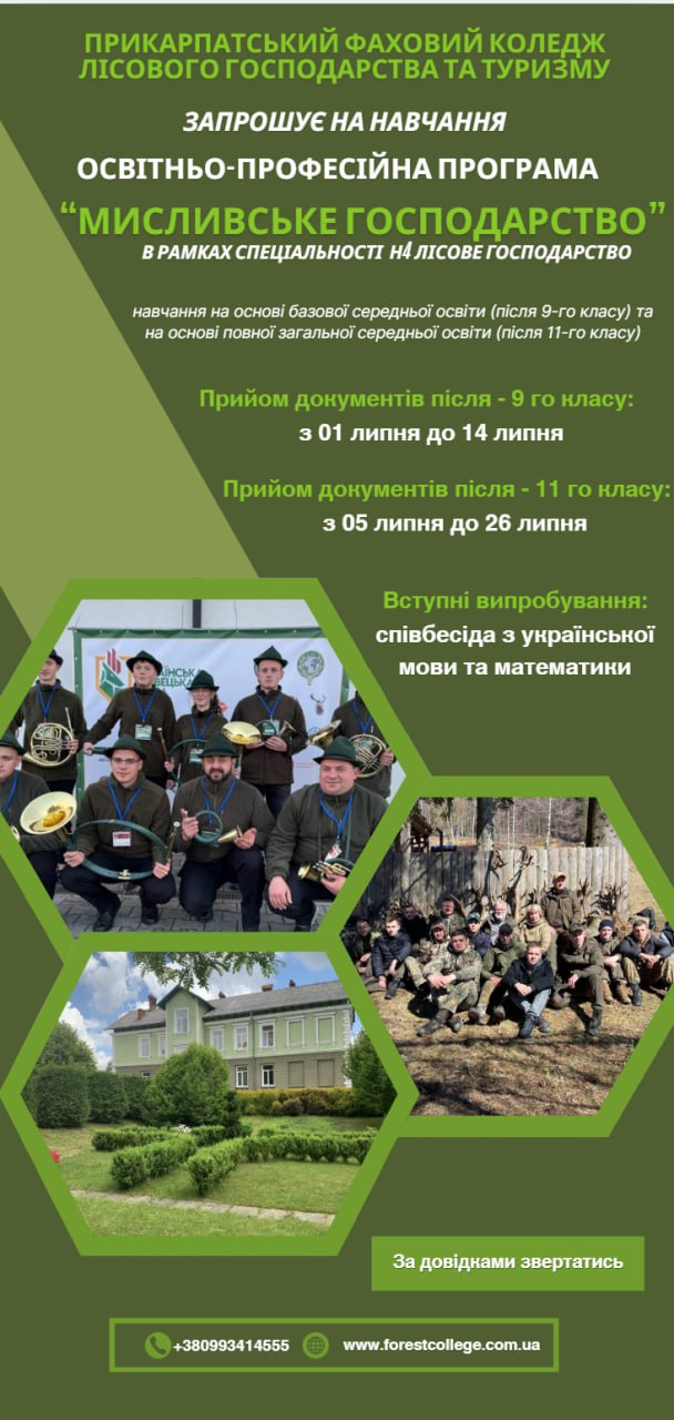 Мисливське господарство: Вступ 2025 у Прикарпатський коледж