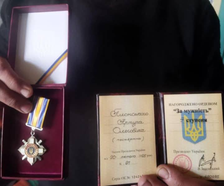 Відповідно до Указу Президента України № 91 від 20.02.2025 року, орденом “За мужність” III ступеня (посмертно) нагороджено захисника ПЛОНСЬКОГО Артура Олеговича з селища Іванопіль. Батько загиблого, Плонський Олег Станіславович, отримав нагороду сина. Артур віддав своє життя за мирне майбутнє України.