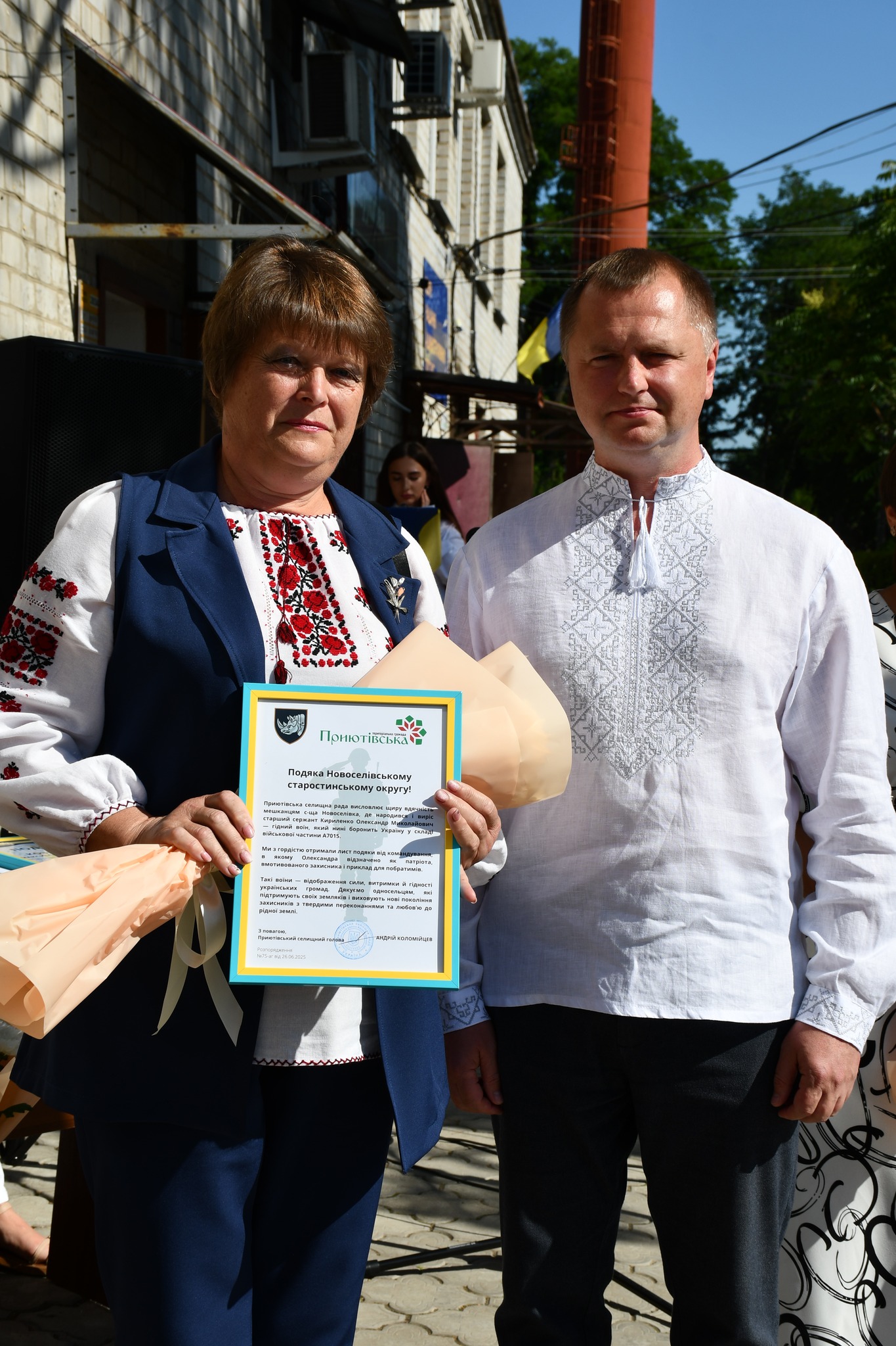До урочистостей долучилося керівництво Красносільської сільської ради. Голова громади у своєму виступі підкреслила важливість співпраці між громадами в умовах війни та вручила символічний подарунок — карту України з позначеними межами обох громад як знак єдності, взаємоповаги та спільної боротьби за майбутнє.