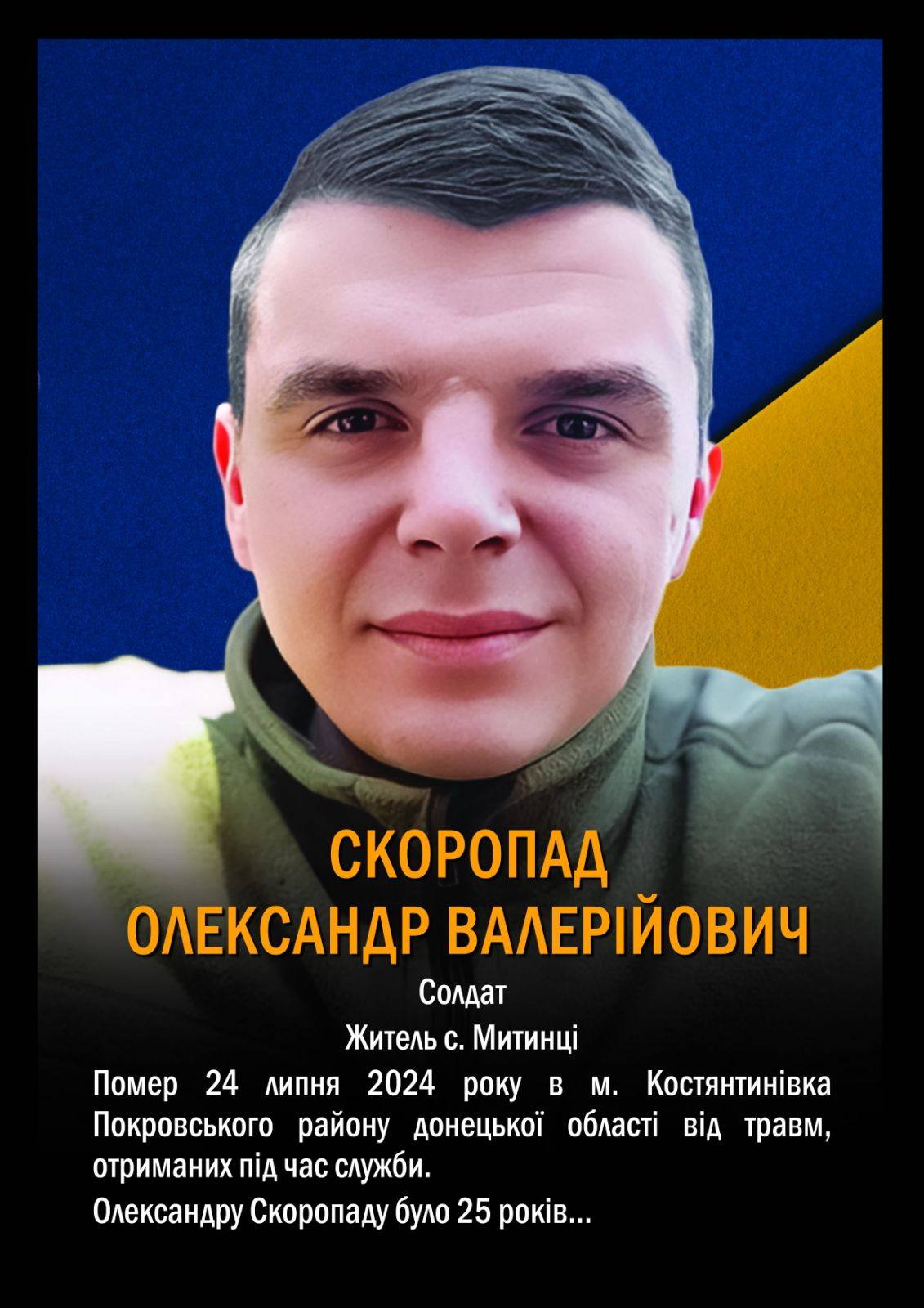 Ім’я Олександра Скоропада назавжди залишиться в наших серцях. Низький уклін родині. Вічна пам’ять і шана. Слава Герою!