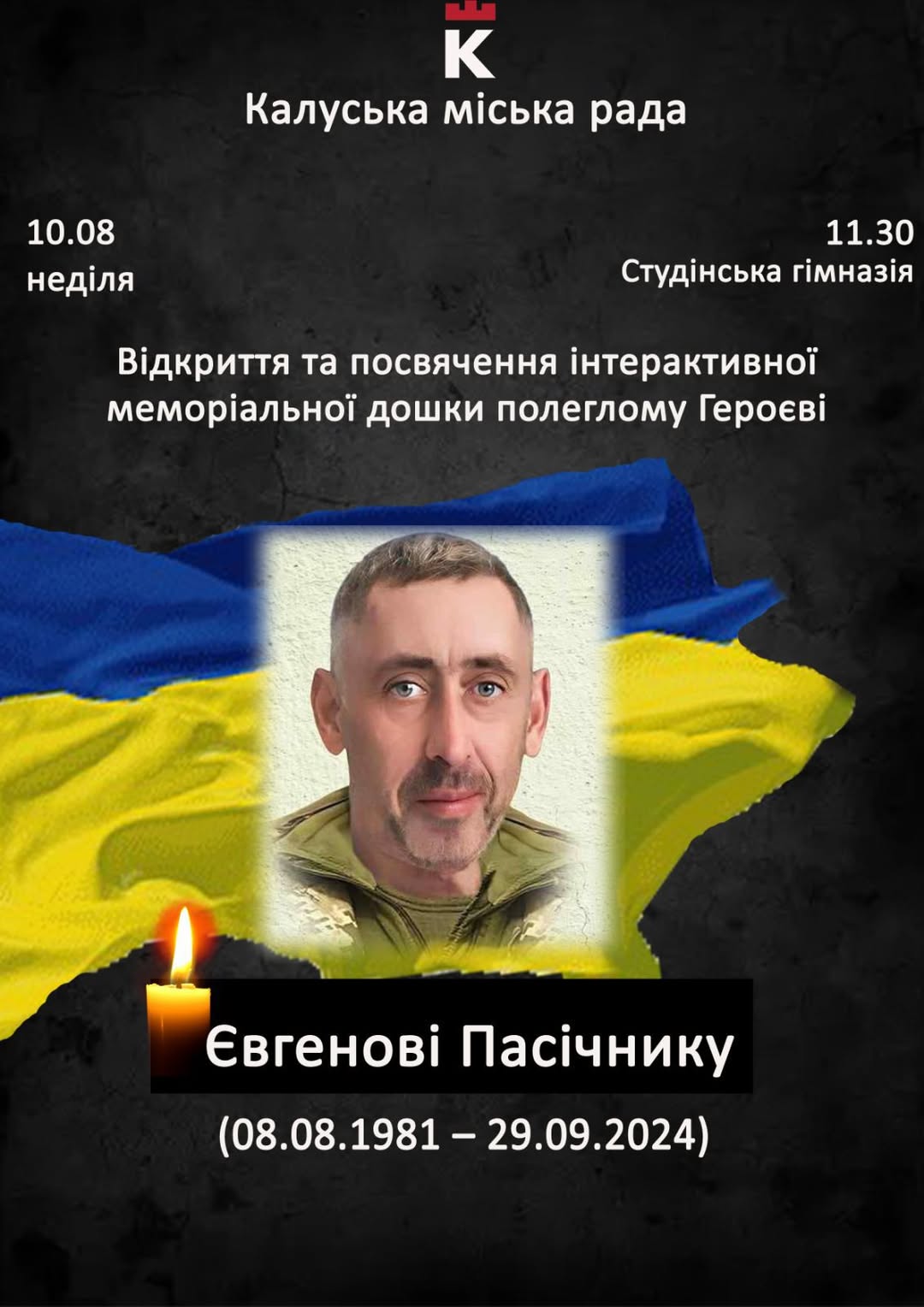 Мешканці Калуської громади, Студінського старостинського округу вшанують пам’ять свого краянина – учасника російсько-української війни Євгена Пасічника.